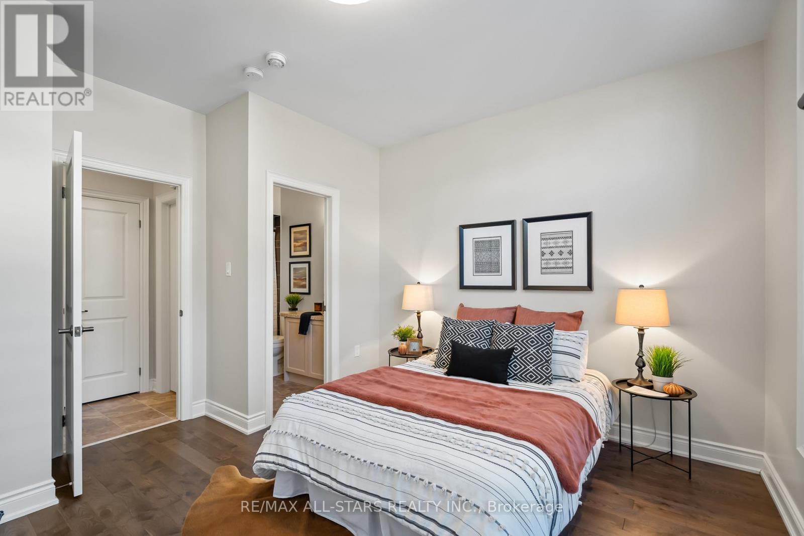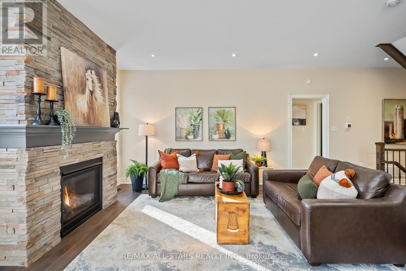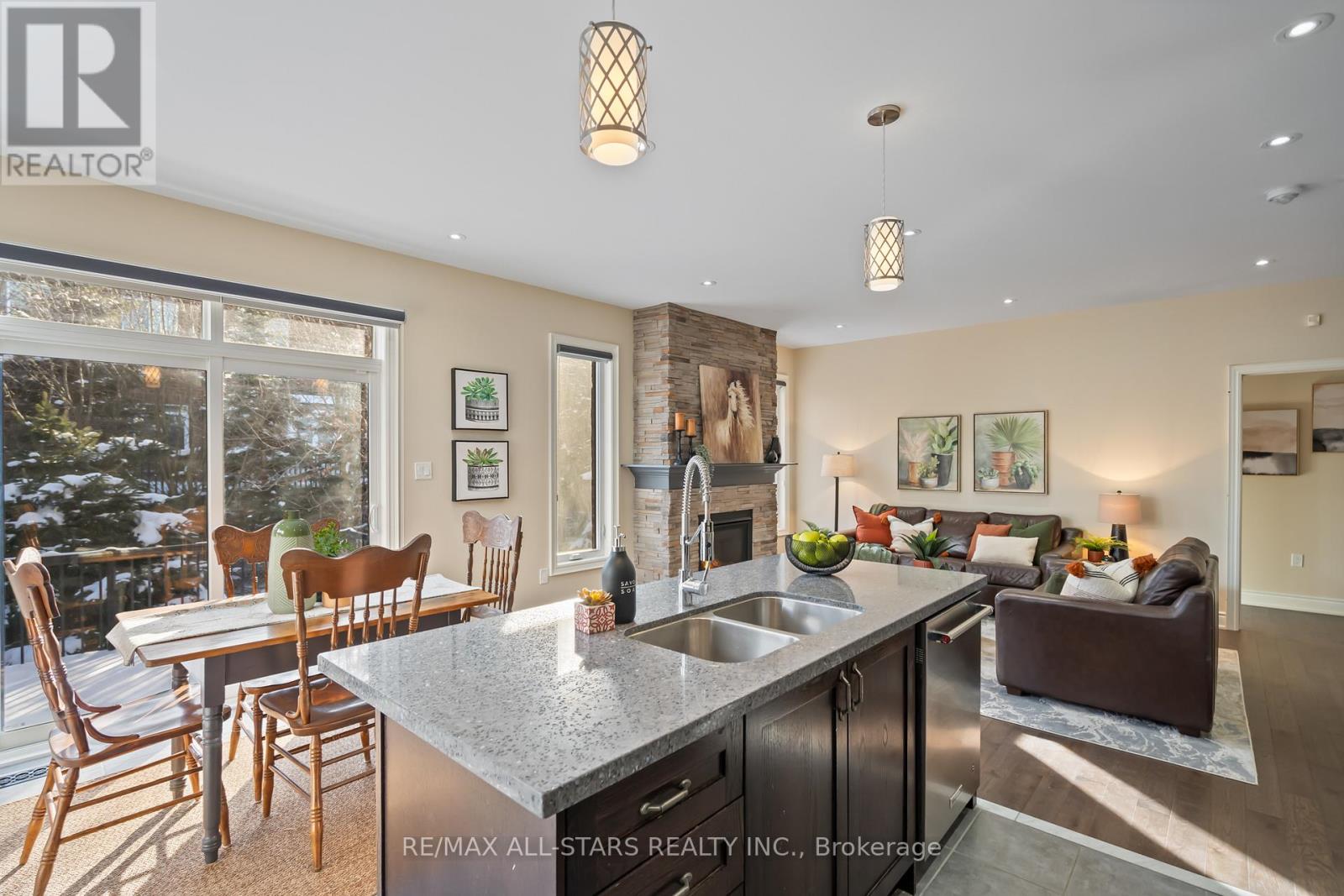 Curb appeal is the first thing you notice with this beautiful 4 bedroom bungaloft on prestigious Os James Hunt Court. With rich red brick and a neutral stone facade, interlock walkway and natural stone steps you are welcomed with immediate warmth. Entering the home you'll appreciate the open concept layout across the back of the house including the living room with gas fireplace featuring cultured stone veneer and framed within 2 large windows, the spacious kitchen with stainless steel appliances and quartz countertops and the dining area which walks out to the deck through the patio slider. The principal suite includes a 5 pc ensuite with built in soaker tub and glass shower enclosure and a spacious walk-in closet with wardrobe. The 2nd Bedroom overlooks the front with a gorgeous arched window and has semi-ensuite access to the 4pc main bathroom. Laundry is conveniently located on the main floor while two additional closets provide ample storage for linens and jackets near the foyer. The upper level features two additional large bedrooms with closet organizers and a third full bathroom. The lower level is unfinished, you can visualize the potential with the wide open space and above-grade windows, and includes a rough-in for an additional bathroom. The landscaped backyard features a raised composite deck (permitted 2017 per MPAC) and interlock patio seating area which continues to wrap around to the gate and walkway to the front of the house. **EXTRAS** POTL $286.94.57 includes street snow removal and garbage/recycle/compost waste removal - full inclusions to be confirmed with the Status Certificate. (id:63285)