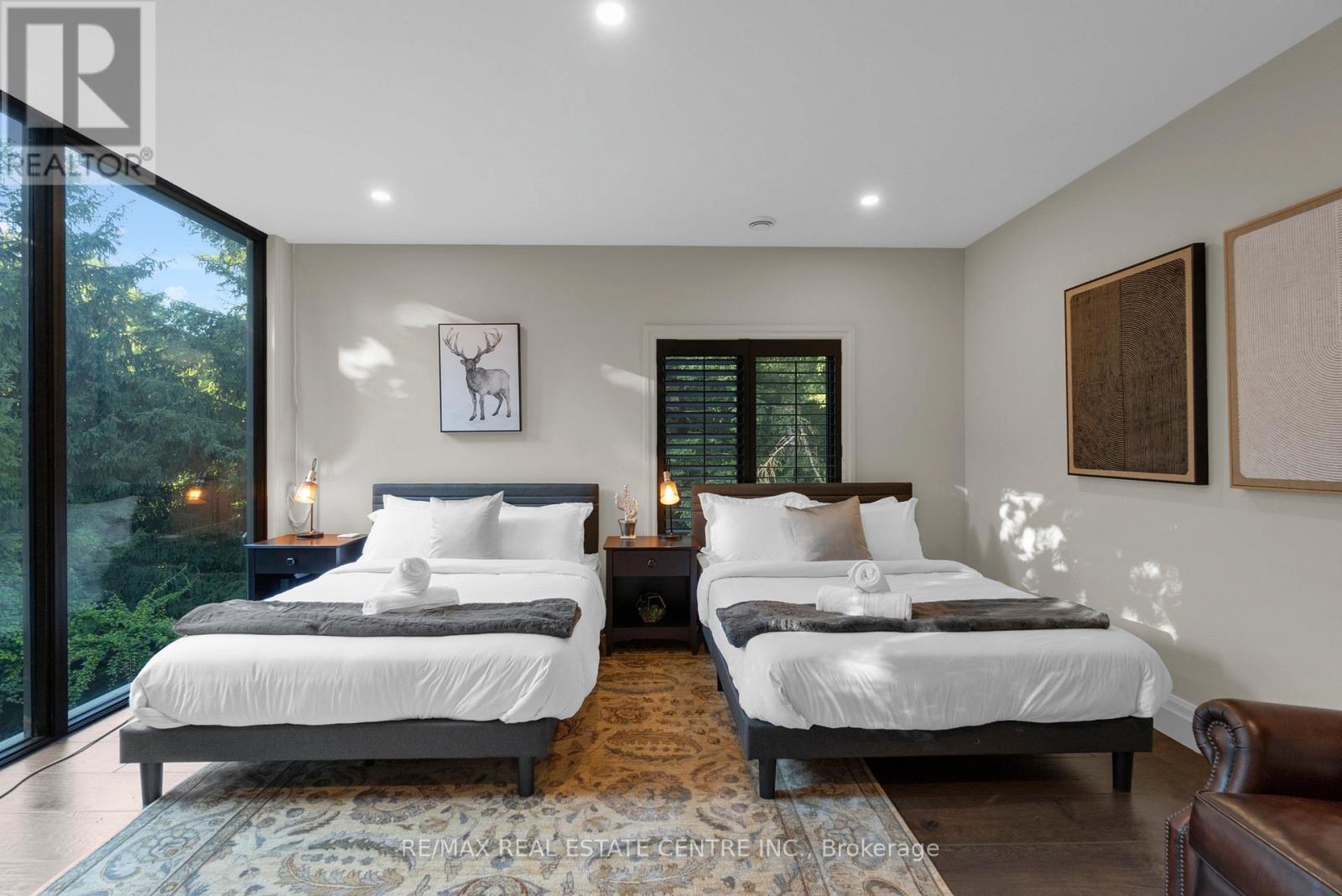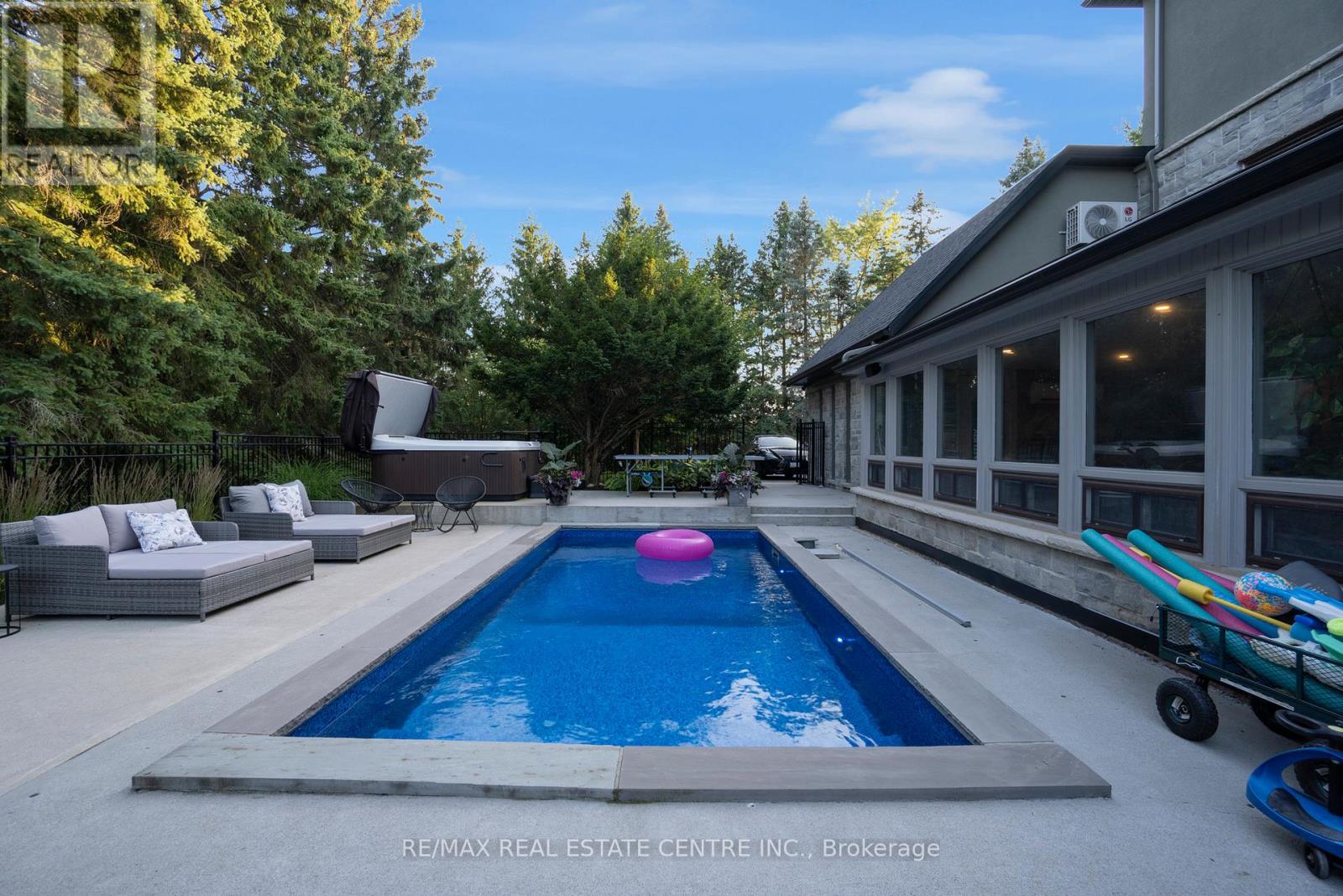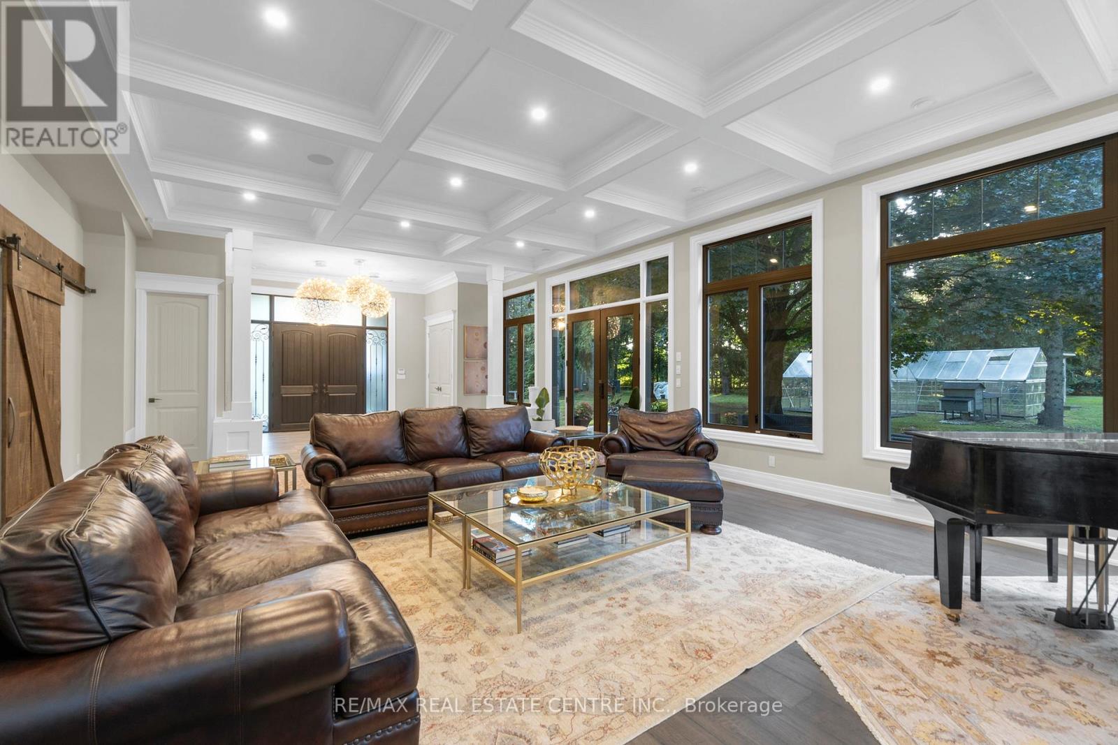 Welcome to your private retreat - this stunning custom-built home (2017) sits on 17 acres of serene countryside, offering over 6,345 sq. ft. of above grade luxurious living space. Designed with both elegance and comfort in mind, the home showcases oversized windows, luxury finishes, hardwood flooring, heated washroom floors and recessed lighting throughout, creating a warm & inviting atmosphere.The heart of the home is the expansive chefs kitchen, featuring a generous center island perfect for family gatherings or entertaining.The kitchen flows seamlessly into the family room, highlighted by beautiful waffle ceilings and large windows that bring in natural light. The massive primary suite is a true sanctuary, complete with its own lounge and study, plus a spa-inspired 5-piece ensuite featuring dual vanities and a shower with two shower heads. The 2nd and 3rd bedrooms boast floor-to-ceiling windows, filling each space with breathtaking views. For entertainment and relaxation, the home offers an impressive array of amenities: a recreation room with walkout to the heated outdoor pool, a soundproof private theatre, treehouse, large garden bed with dedicated water and power for growing fruits or veggies, and an entire third-floor retreat with yoga-workout space. Whether you are hosting intimate movie nights or morning meditation sessions, this home caters to every lifestyle. Step outside to multiple outdoor seating areas, thoughtfully designed for large family dinners or gatherings with friends, all surrounded by the peaceful expanse of your own private 17 acres! ***Out of the total 17 acre lot, the West side of the property features approximately 10 acres of crop land that can be rented to a farmer if you desire, while the East side of the property the house is situated on features approx. 7 acres of green space/grass. Building permit for 1000 Sq Ft barn on West side of property. Opportunity to acquire $20k of equipment to build your own greenhouse, if desired.*** (id:63285)