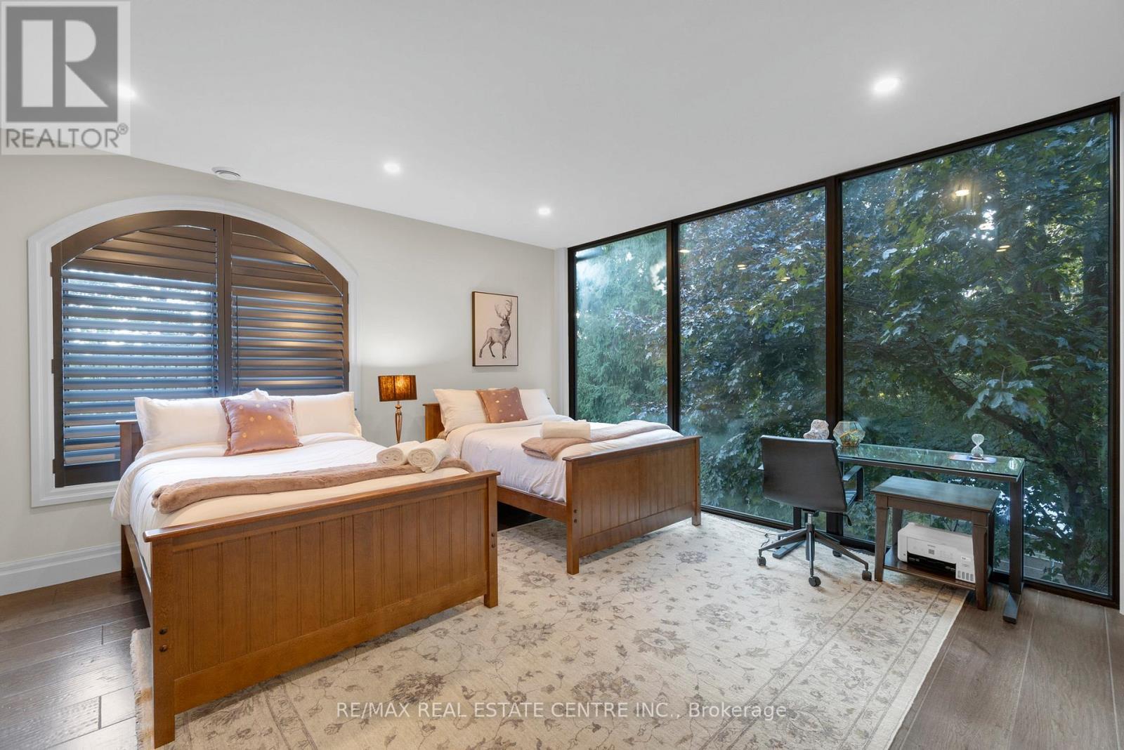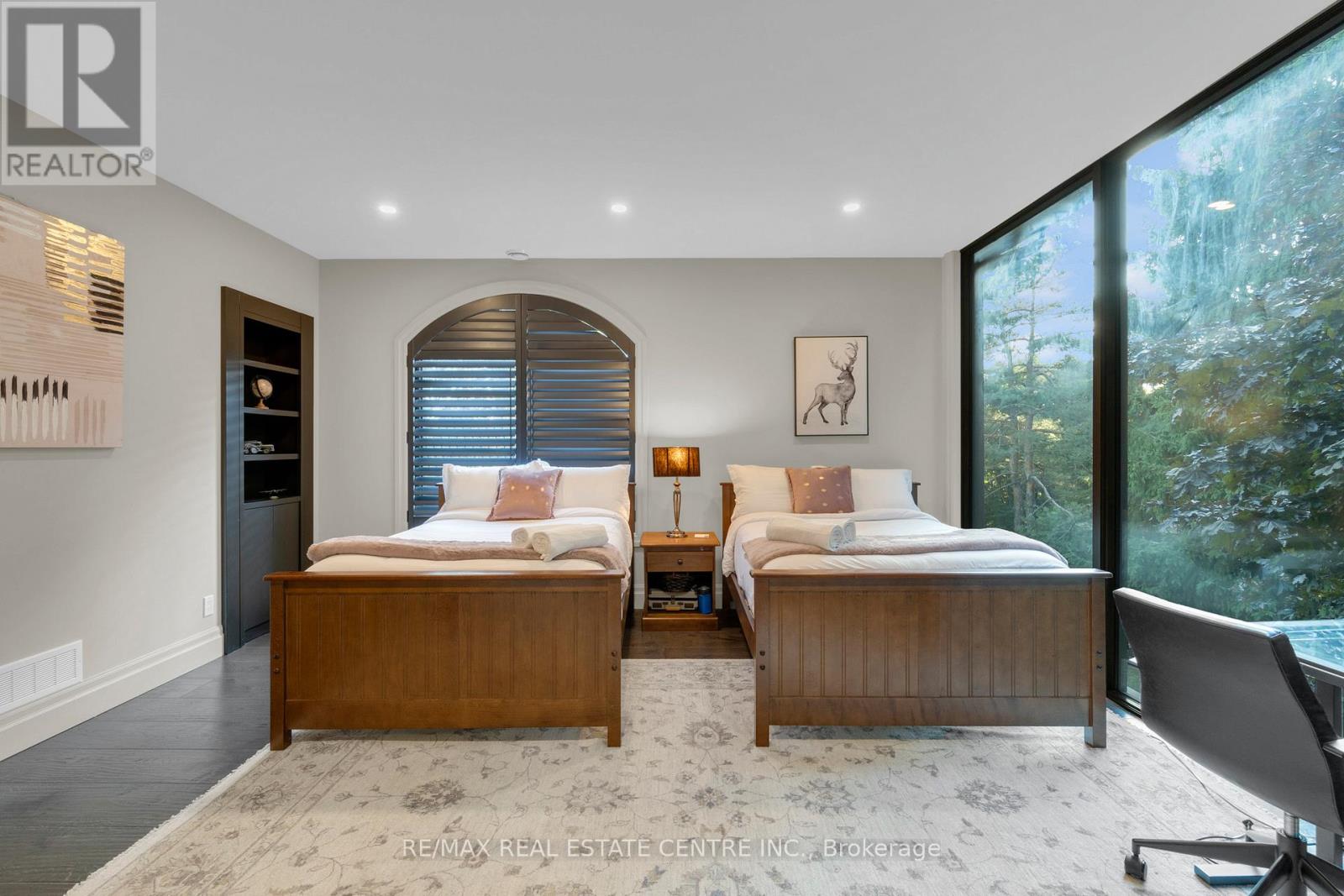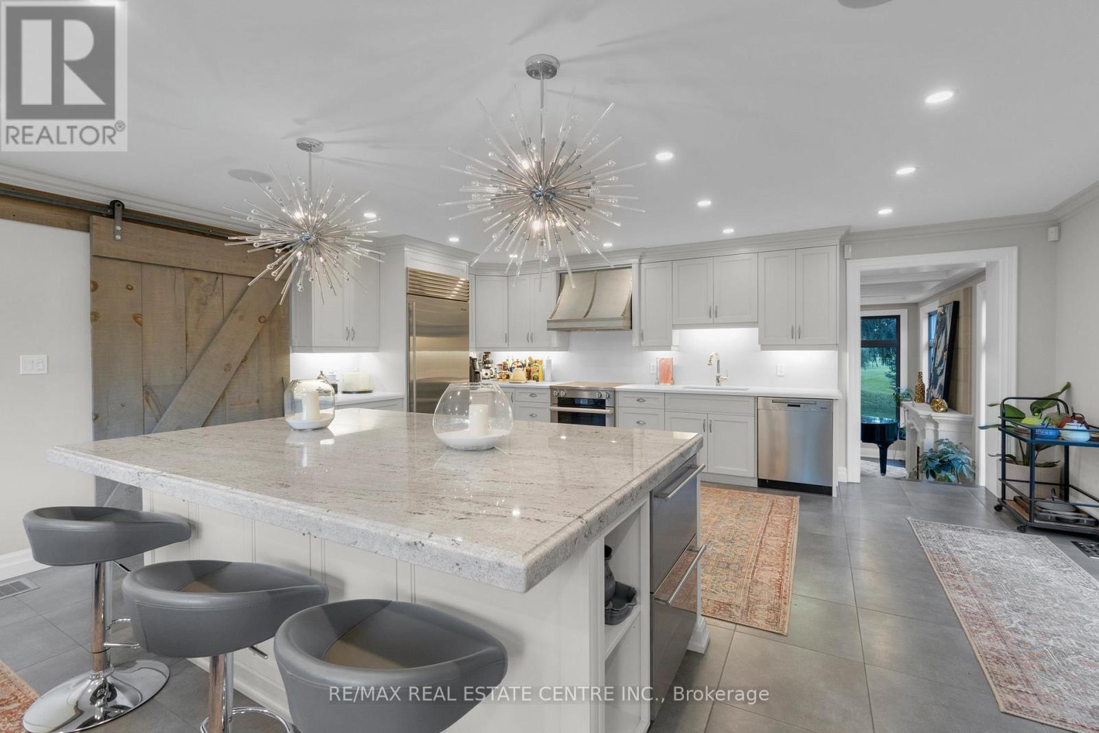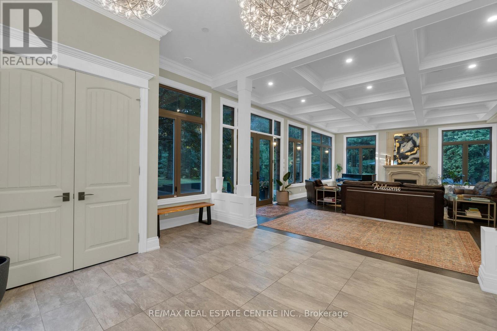 Welcome to your private retreat - this stunning custom-built home (2017) sits on 17 acres of serene countryside, offering over 6,345 sq. ft. of above grade luxurious living space. Designed with both elegance and comfort in mind, the home showcases oversized windows, luxury finishes, hardwood flooring, heated washroom floors and recessed lighting throughout, creating a warm & inviting atmosphere.The heart of the home is the expansive chefs kitchen, featuring a generous center island perfect for family gatherings or entertaining.The kitchen flows seamlessly into the family room, highlighted by beautiful waffle ceilings and large windows that bring in natural light. The massive primary suite is a true sanctuary, complete with its own lounge and study, plus a spa-inspired 5-piece ensuite featuring dual vanities and a shower with two shower heads. The 2nd and 3rd bedrooms boast floor-to-ceiling windows, filling each space with breathtaking views. For entertainment and relaxation, the home offers an impressive array of amenities: a recreation room with walkout to the heated outdoor pool, a soundproof private theatre, treehouse, large garden bed with dedicated water and power for growing fruits or veggies, and an entire third-floor retreat with yoga-workout space. Whether you are hosting intimate movie nights or morning meditation sessions, this home caters to every lifestyle. Step outside to multiple outdoor seating areas, thoughtfully designed for large family dinners or gatherings with friends, all surrounded by the peaceful expanse of your own private 17 acres! ***Out of the total 17 acre lot, the West side of the property features approximately 10 acres of crop land that can be rented to a farmer if you desire, while the East side of the property the house is situated on features approx. 7 acres of green space/grass. Building permit for 1000 Sq Ft barn on West side of property. Opportunity to acquire $20k of equipment to build your own greenhouse, if desired.*** (id:63285)
