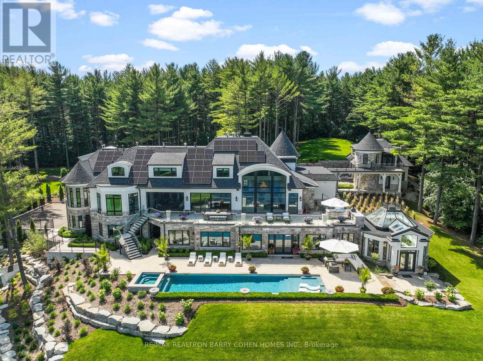 15466 & 15430 Gore Road Stonebridge Estate. An Extraordinary, Fully Renovated Estate By Award-Winning Chatsworth Fine Homes With Interiors By Jane Lockhart Designs. Set In East Caledon, This Private 52.5-Acre Retreat Features Forested Grounds, Three Ponds, A Cascading Stream, A Protected Spring-Fed Lake, And A 2-Km Nature Trail. The Main Residence Offers A Grand Great Room, Formal Dining Area, Two-Way Fireplace, Custom Champagne Bar, And Walk-Out To A Stunning Terrace. The Gourmet Kitchen Includes An Attached Morning Kitchen And Premium Appliances. The Luxurious Primary Suite Features Dual Ensuites, Steam Showers, And A Bespoke Dressing Room. Upstairs, Find Three Ensuite Bedrooms, A Private Library, And An Entertainment Lounge With Walk-Out To The Resort-Style Pool. The Home Also Includes 2 Wet Bars, Custom Ice Cream Parlour, Salon And Spa, Gym With Cushioned Flooring, Trackman Golf Simulator, And A Striking Glass-Domed Conservatory. Outdoor Living Features A Covered Lounge With Automated Screens And Fireplace, Hot Tub With Waterfall, Professional Landscaping, Golf Green, Scenic Lookout, And Curated Gardens. Additional Residences Include A One-Bedroom Coach House, A Three-Bedroom Guest House With Basement And Fireplaces, And A Beach House With A Private Swimmable Pond And White Sand. Two Heated Garages With EV Chargers Complete This Exceptional Offering. Stonebridge Is A Rare Blend Of Natural Beauty, Refined Design, And Resort-Style Living. (id:63285)