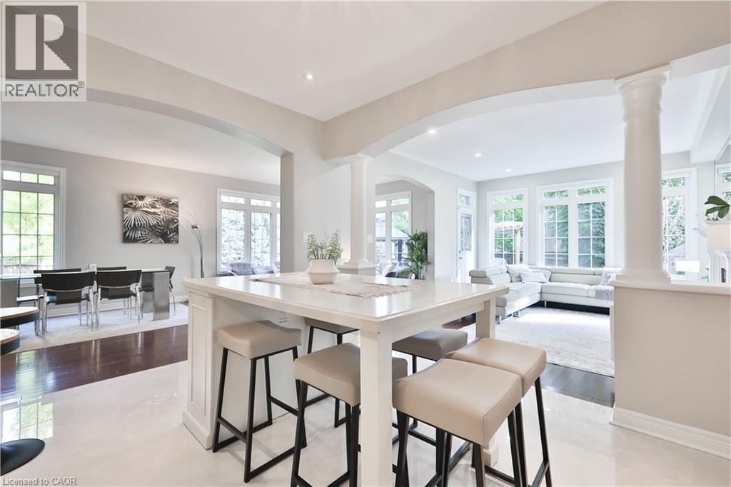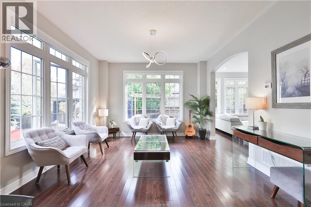 Welcome to this stunningly upgraded family home in the prestigious Bronte Creek community of Oakville. Perfectly positioned on a premium pool-sized lot on a quiet, family-friendly street this exceptional Monarch built home offers 3,812 sq. ft. of fully finished living space on three levels providing the ultimate blend of luxury, comfort, and functionality. This 4-bedroom, 3+1 bath residence has been meticulously updated inside and out. A striking exterior with fresh paint and timeless curb appeal sets the tone for elegance within. Step through the grand foyer to discover a bright, flowing open-concept layout enhanced by new porcelain tile and hardwood flooring, designer lighting, and custom wainscoting that elevate every space. The updated gourmet chef’s kitchen is a true showpiece, featuring custom cabinetry, Stainless steel premium appliances, granite counters and a large island that seamlessly connects to the cozy family room with a gas fireplace, perfect for entertaining or relaxed family living. The formal dining and living rooms exude sophistication, ideal for hosting special gatherings. The upper-level features new hardwood, a luxurious primary suite providing a serene escape with a spa-inspired 5 pc. ensuite and a generous walk-in closet. A stunning loft/office space, three spacious bedrooms, a main bath and laundry room complete the upper level. The fully finished lower level adds exceptional versatility with a rec room, gym/home office space, an updated 3-piece bath and ample storage ideal for growing families. Step outside to your own private haven, an entertainer’s dream. The fully fenced pool-size lot showcases professionally landscaped gardens featuring mature trees, fire pit and tiered decks offering outdoor enjoyment in every season. Located minutes from highways, top-rated schools, shopping and the best of Oakville’s natural beauty, this Bronte Creek gem combines modern luxury with timeless elegance and is a rare opportunity not to be missed. (id:63285)