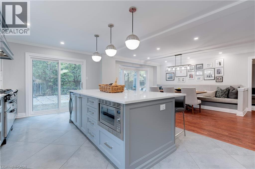 Showcasing inviting, comfortable family living, this executive Mattamy (Oxford model)home built in 1989 has been transformed into a sophisticated sanctuary. With 6 bedrooms & 4 full bathrooms upstairs including 2 spacious primary bedrooms with spa-inspired ensuites, this home balances style & function. Solid hardwood flows throughout complemented by smooth ceilings, designer trim, baseboards & contemporary door hardware, creating a cohesive, high-end finish. A major renovation in 2018 (kitchen, laundry, powder room) provides a fresh, updated living space perfect for entertaining. The heart of the home is the stunning chef-inspired kitchen where design meets practicality. A massive 13' banquette invites family & friends to gather while the oversized island with Cambria quartz countertops anchors the space. High-end appliances-Sub-Zero fridge, 36 AGA dual fuel range, Miele dishwasher, wine fridge plus pull-out pantry & spice cabinets make cooking effortless. Sliding doors & large bay window flood the space with light. A cozy family room with wood-burning fireplace & wainscoting offers a warm retreat while a separate dining room & main-floor office/den provide versatile living spaces. Upstairs all 6 bedrooms feature hardwood & custom closet organizers. The 5-piece primary ensuite dazzles with heated floors, a spa-style shower with rain head & body jets plus soaker tub. The unfinished basement provides a blank canvas for customization-home gym, media room,etc. Set on an oversized corner lot measuring 72' across the back, the outdoor space is family's dream-saltwater pool with waterfall & slide, stone patio & BBQ area, unique 2-storey playhouse & cabana, plus a grass area perfect for children & pets. Located in the highly sought-after Glen Abbey community with top-ranked schools, parks, trails, community center, shopping, GO transit & highways nearby, this residence offers the ultimate blend of style, space & location—a rare Oakville treasure designed for today's family (id:63285)