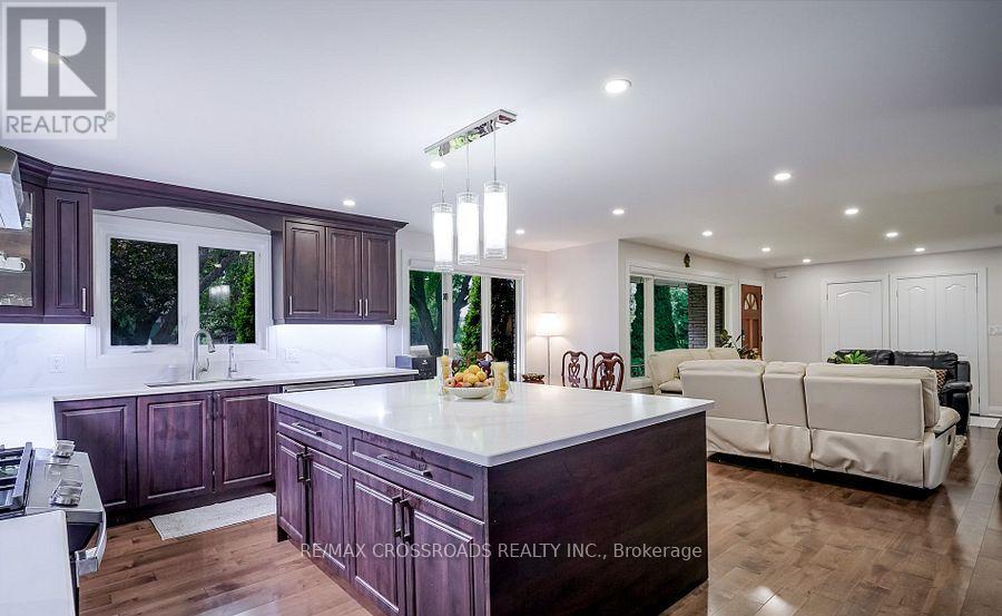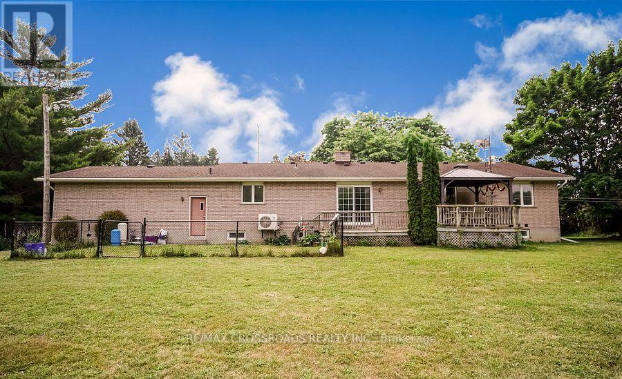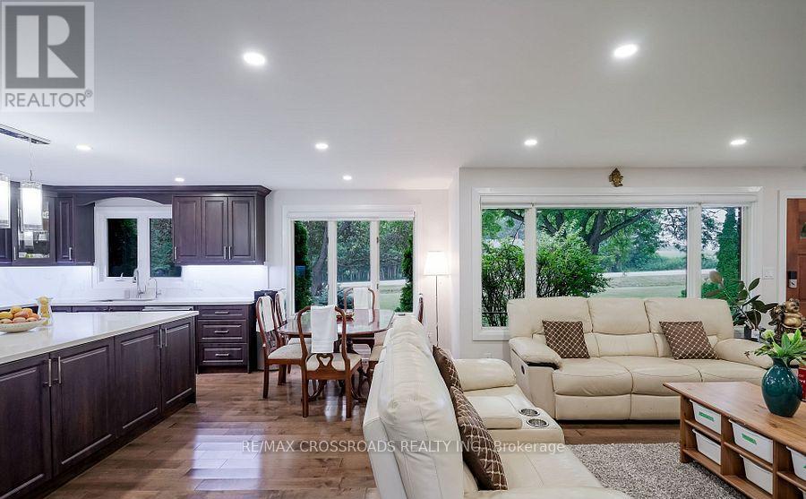 Beautiful Brick Bungalow on 1.5 Acres ! Don't miss this rare opportunity to own a fully renovated (2022) brick bungalow nestled on a stunning 1.5-acre lot, complete with mature apple and pear trees, a fenced garden area, and plenty of backyard space to enjoy with family and friends.This charming home features a spacious 2-car attached garage and a bright, modern interior family-sized kitchen renovated in 2023 and includes brand-new cabinets, a massive quartz center island with added storage, and high-end stainless steel appliances , gas stove, built-in oven, 4-door fridge, built-in dishwasher all overlooking the open-concept dining and living areas. A large picture window in the living room offers stunning views of the front yard.Enjoy hardwood flooring throughout (2022), pot lights in the kitchen, living, and family rooms, and a cozy family room with a wood-burning fireplace, custom built-in showcase and a walk-out to the deck and backyard. 200 Amps upgraded electrical panel (2023).The front yard mature trees provide shade all summer long, creating a peaceful, private setting.This home offers both comfort and elegance ideal for those seeking space, nature, and modern upgrades in one perfect package (id:63285)
