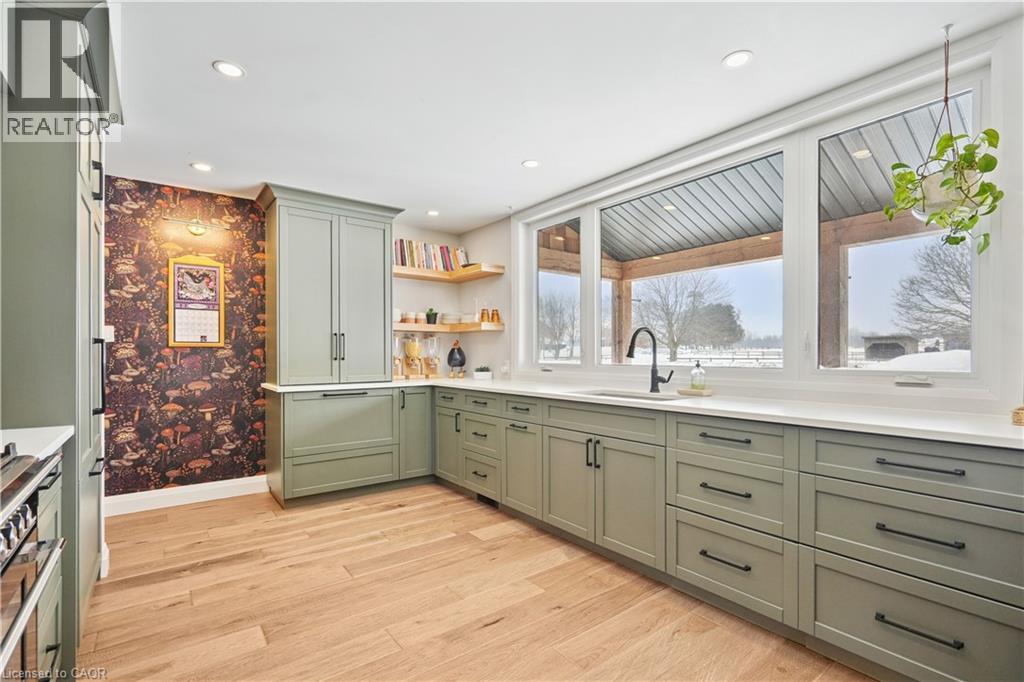 Welcome to 8687 Wellington Rd 22 in Rockwood, a beautifully renovated 4-bedroom, 3-bathroom family home offering 2,240 sq ft of thoughtfully designed living space on a 100 x 150 ft lot just minutes from Belwood Lake Conservation Area. Completely transformed in 2023, this home was rebuilt with care and quality, including a second storey addition, new roof, energy-efficient windows, upgraded insulation, new wiring and plumbing, modern mechanical systems, and an on-demand hot water heater. Step inside to a bright open-concept main floor where the heart of the home is a stunning chef’s kitchen featuring quartz countertops, a spacious breakfast bar, gas range with pot filler, pot lights, oversized windows and a walk-in pantry that makes family organization effortless. The living room impresses with a soaring vaulted ceiling open to above, while the dining room walks out to the backyard. The main floor primary bedroom offers privacy and convenience with a walk-through closet and beautifully finished 4-piece ensuite. A 2-piece powder room completes the level. Upstairs, families will love the open loft space currently designed as a home office overlooking the living room. Three generously sized bedrooms and a 4-piece bathroom provide room for growing families. The unfinished basement offers future potential for additional living space, a recreation room, or in-law suite. Laundry is located in the basement for practicality and separation. Outside, enjoy a double car garage with interior access, parking for up to 6 vehicles in the driveway. Located just 12 minutes to Belwood Lake Conservation Area, 18 minutes to Fergus, and 20 minutes to Acton GO Station for commuting into Georgetown, Brampton, and Toronto, this property delivers rural tranquility without sacrificing accessibility. If you have been searching for a fully renovated country home near Rockwood with space, privacy, and commuter convenience, this is the one that feels like home the moment you walk in. (id:63285)