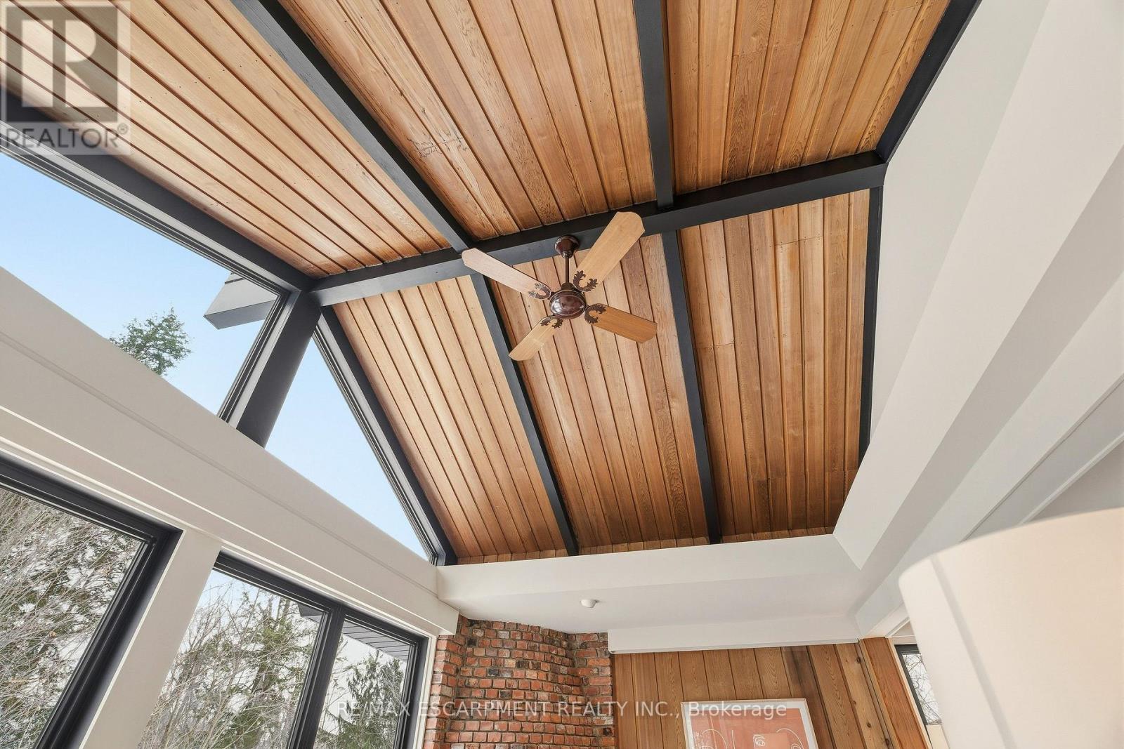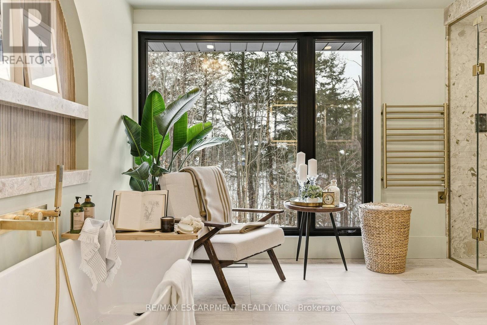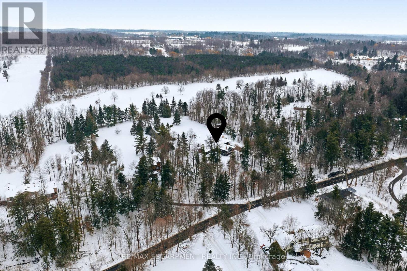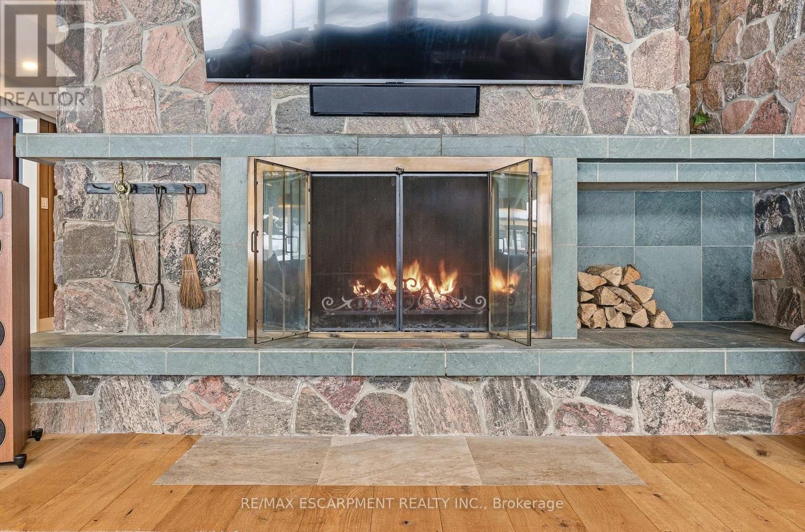 Stunning mid-century modern residence on an extraordinary 4.6-acre property backing onto the Lowville Golf Course. Completely reimagined with a thoughtful top-to-bottom transformation, this home sits on one of the most picturesque roads along the North Burlington escarpment. The property is surrounded by untouched ravines that form part of the land, extending into the ancient Appalachian forest-also known as the Carolinian rainforest. This rare ecosystem creates a lush, private, and immersive natural backdrop. Offering approximately 3,000 sq. ft. of main-level living, the bungalow features solid-wood paneled walls, vaulted ceilings, and wide-plank white oak flooring. The great room showcases an impressive granite wood-burning fireplace and walls of glass overlooking the forest canopy, bringing nature indoors. There are two bedrooms with floor-to-ceiling windows, plus an additional great room that opens to a showpiece kitchen equipped with a 48-inch gas range, built-in fridge and freezer, bar area, and wine fridge. The spa-inspired primary en-suite features a marble vanity, marble shower, stand-alone tub with forest views, and a private water closet. A beautiful 4-piece bath, mudroom with access to the covered front deck, and a laundry closet complete the main level. The walk-out lower level adds two bedrooms, a family room, a luxurious 5-piece bath, and a second laundry area. The grounds include a charming gazebo with a wood-burning fireplace, two poolside structures, an inviting in-ground pool, and a stone fire-pit area ideal for movie nights under the stars. Opportunities like this-where architecture, land, and untouched natural beauty converge-are rare. Let's get you home. Luxury Certified. (id:63285)