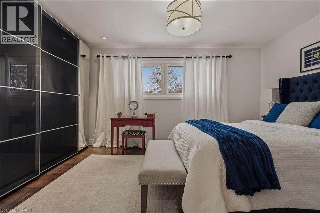 Welcome to 2424 Eileen Dr., an impeccably finished Burlington residence offering refined living in a prime, walkable location. Steps to Central Park, the Library, and Downtown, this home blends modern comfort with exceptional convenience. The main level showcases sophisticated open-concept living, highlighted by a contemporary electric fireplace, newer picture window, and a chef-inspired kitchen with a large island, quartz countertops, stainless appliances, and a gas range. The serene primary suite features a spa-like ensuite with soaker tub and double vanity, and complemented by a full PAX wardrobe system in bedroom. A second bedroom, powder room with laundry, and direct backyard access complete this level. The turnkey in-law suite provides generous living and dining space, an updated kitchen with full appliance package, private laundry, a 3-piece bath, spacious bedroom, and an additional office/bedroom—ideal for multi-generational living or extended guests. Outdoors, the property impresses with a private backyard retreat featuring a gazebo sitting area off the back door, a dedicated firepit zone, garden shed, and additional covered storage behind the oversized garage (16' x 26')—perfect for hobbyist or car buff --a rare combination of comfort and functionality. A polished, versatile home offering exceptional flexibility in one of Burlington’s most desirable pockets. (id:63285)
