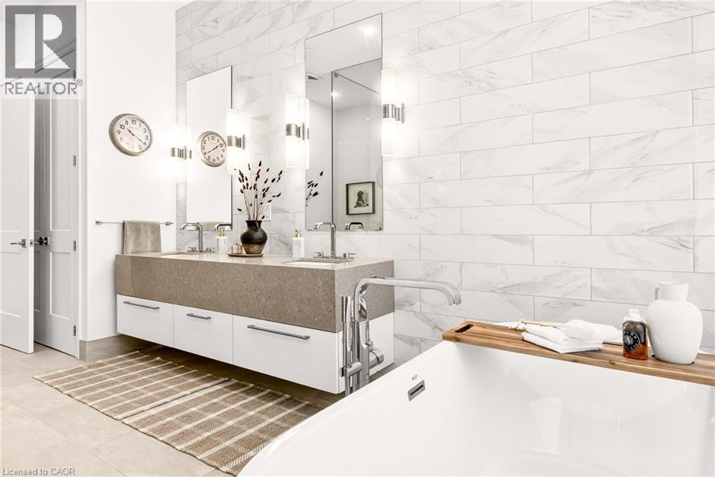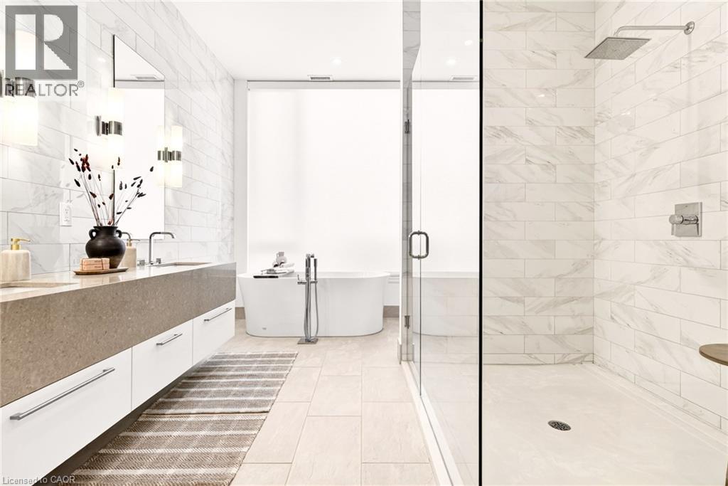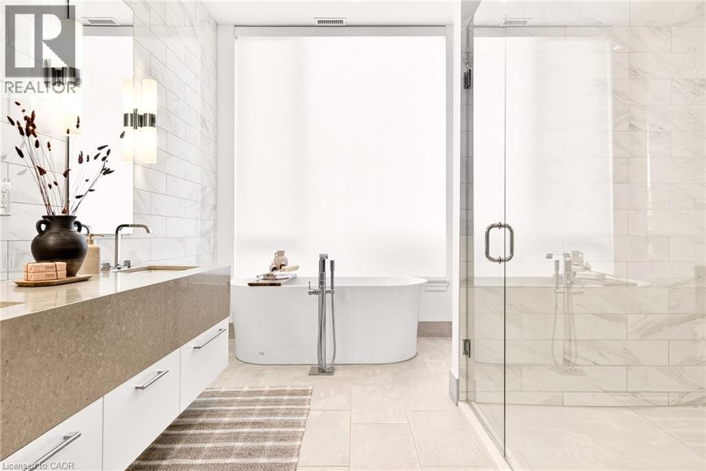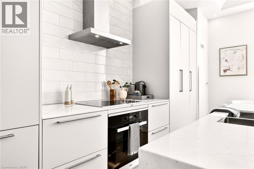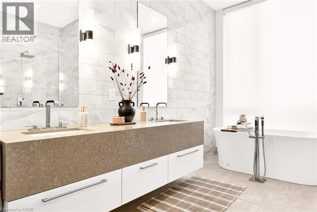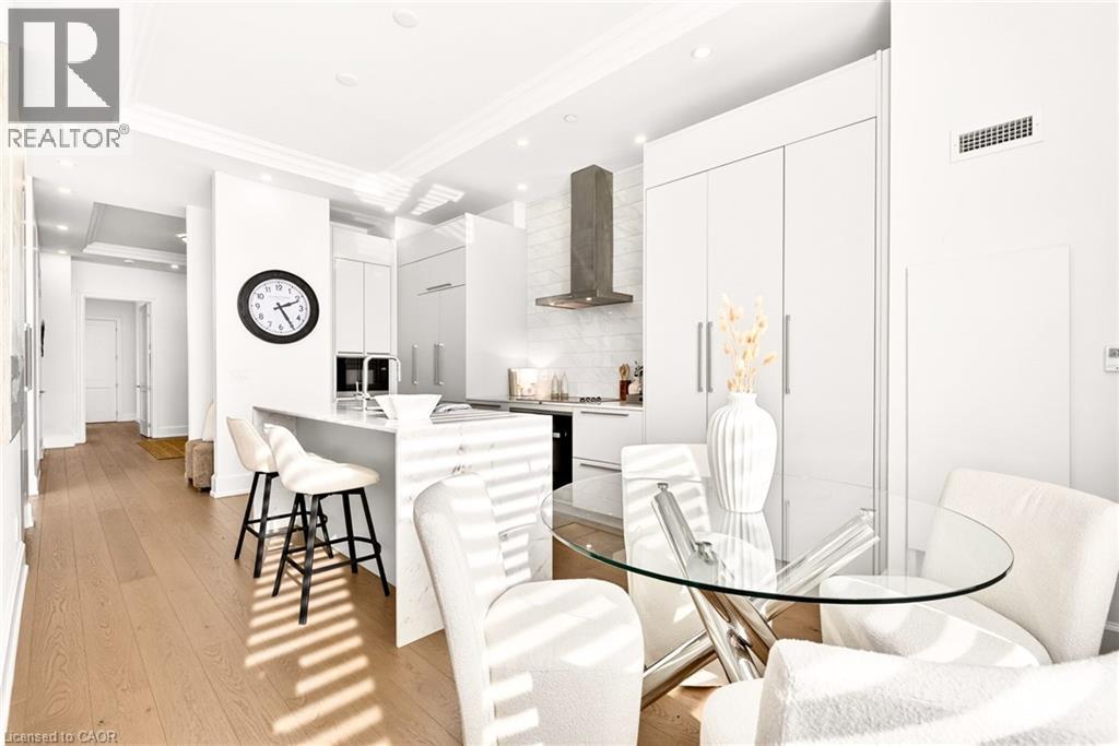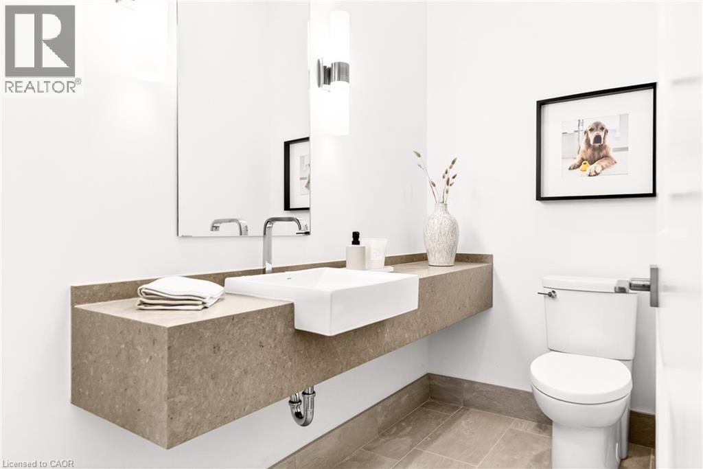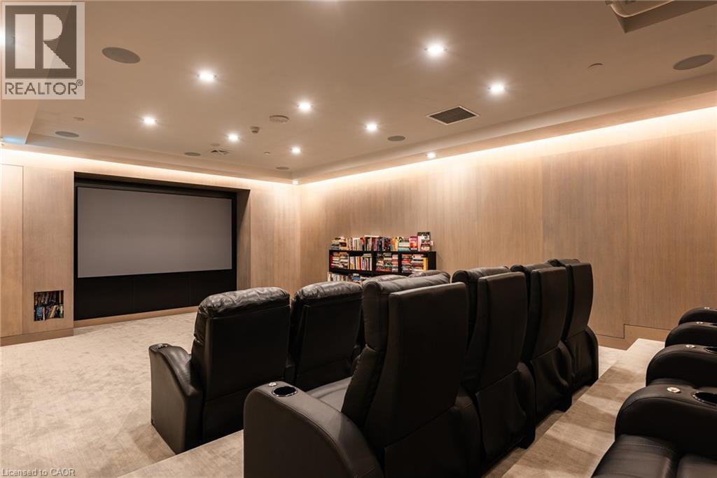 Perched above the city at the prestigious Saxony, this extraordinary 2,578 sq. ft. penthouse redefines what condominium living can feel like. Here, life unfolds with space, light, and effortless elegance. Ten-foot ceilings and expansive principal rooms create an immediate sense of calm and grandeur, while walls of windows draw in the ever-changing sky. As evening falls, step onto the 300 sq. ft. southwest-facing terrace and watch the sun melt into the horizon, city lights beginning to sparkle below, a glass of wine in hand. The nearly 28-foot great room was designed for both intimate evenings and unforgettable gatherings. A double-sided fireplace flickers between living and dining spaces, adding warmth and ambiance whether you’re hosting a dinner party or enjoying a quiet night in. The open-concept kitchen, anchored by premium integrated appliances and generous prep space, becomes the heart of the home, where conversation flows as easily as the layout itself. The versatile 2+1 bedroom design adapts beautifully to your lifestyle. The den is spacious enough to function as a true third bedroom, private office, or creative retreat. The primary suite is a serene sanctuary, complete with a walk-in closet and spa-inspired ensuite designed for slow mornings and restorative evenings. A thoughtfully appointed second bedroom ensures guests or family feel equally at home. Custom closets and automated blinds throughout reflect a level of finish that is both refined and practical. Beyond the suite, three oversized parking spaces, including an EV charger, and a large private locker provide rare convenience and flexibility. Residents enjoy concierge services, a fitness studio, and a rooftop lounge that extends your living space even further. Steps to the lake, the Burlington Performing Arts Centre, boutique shopping, and celebrated dining, this penthouse offers the privacy and scale of a home paired with the vibrancy of downtown living — a place where every day feels elevated. (id:63285)