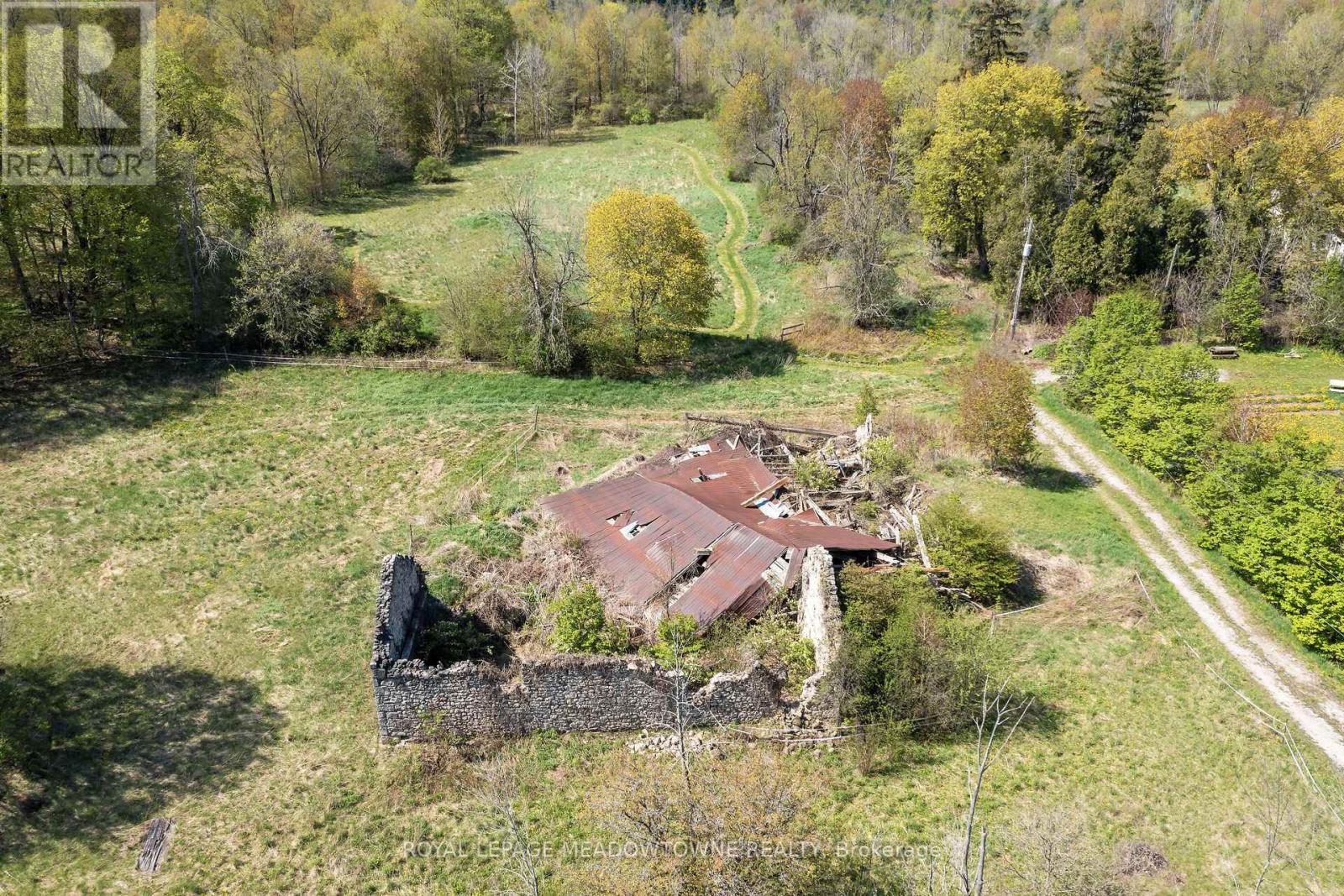 83 Acre Farm Land Opportunity - Iconic Stone Farmhouse, Forest & Fields. This 83-acre-property - located just south of Hwy 401 and north of Campbellville on a paved road - offers a compelling blend of open fields and mature forest. It creates an idyllic setting for a private estate, retreat, or the revival of a working homestead farm. Many years ago, the fields were in crops and pasture where horses once roamed. Padlocks existed in 2022. With vision and care, this former farmstead can be brought back to life - for crops or equestrian uses. At the heart of the property stands an 1890 Ashlar stone, 1 1/2 storey farmhouse that has withstood the test of time, proudly retaining the timeless beauty of its original stone exterior. Renovated in the 1950's, it presents an exceptional opportunity to restore, renovate or incorporate its impressive facade into a truly magnificent custom estate home feature. Also on the property are the distinctive ruins of a grand 1890's stone bank barn. The barn's enduring footprint offers lots of options. Zoned A2, the property includes a very small portion of wetland in the northern area and Killbride Creek running through the northwest corner, bordering the Pioneer Creek Trail. The land is not within the NEC mapping, offering fewer building restrictions. This is a once-in-a-lifetime opportunity to own legacy farmland rich in history, natural beauty and endless future potential. Zoned Residential and A2 with no farm credit applied. The property may be subject to HST. The property has not been farmed for a long term. Two lots have been previously severed from the property. Frontage calculated by property width to the North and Southern lot lines. Centrally located near Milton, Campbellville, Highway 6 and the 401, this rare offering combines natural beauty, rich history, and the potential to restore a working farm or develop a showpiece country estate. (id:63285)