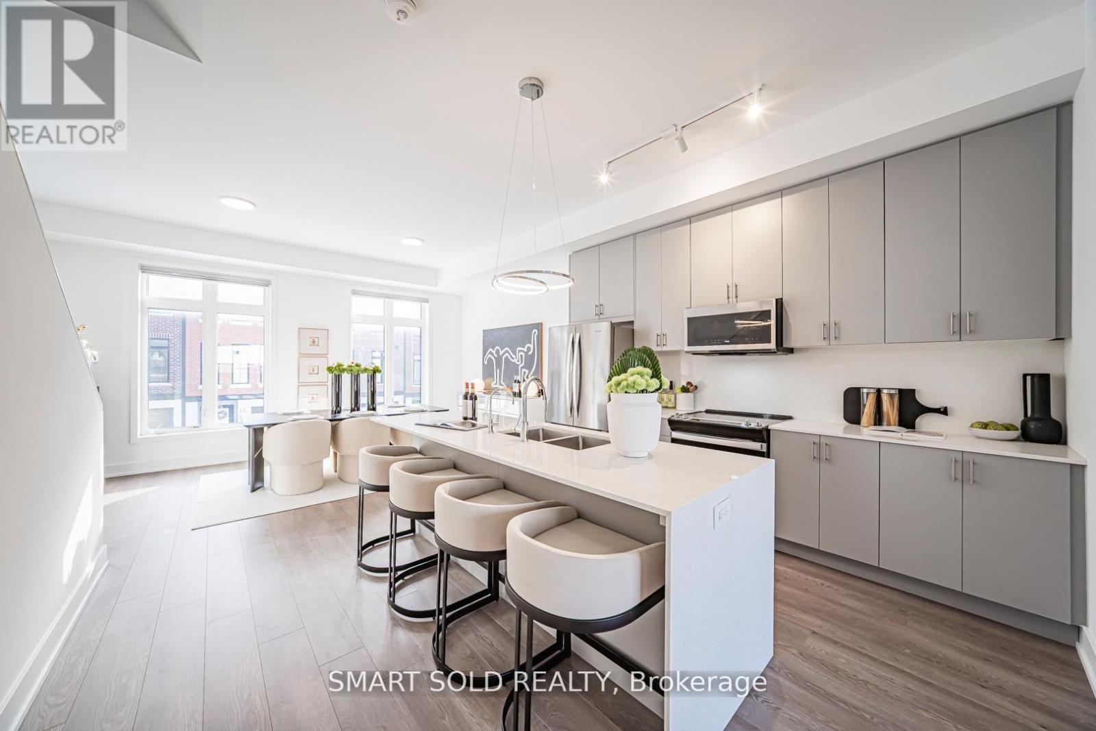 Bright & spacious upgraded t/h offering approx. 2,251+587 sq.ft. of living space, featuring 4 bdrms & 5 w/r. Well-designed layout w/ excellent natural light throughout & generous proportions on all levels. Impressive ceiling heights incl. 10 ft ceilings on 2nd flr, 9 ft on 3rd flr, & approx. 8.6 ft ceilings in fin. W/O bsmt, creating an open & airy feel. Features eng. hdwd flr t/o, private rooftop terrace (627 sq.ft.), & main flr balcony. Rooftop terrace w/ upgraded outdoor faucet for easy maintenance. Approx. $25,000 spent on builder upgrades, plus numerous post-builder improvements. Upgraded kit. w/ waterfall island c/top, ext. backsplash, under-cab. lighting, S/S appl. pkg., built-in garbage & recycle cabinet system, & water filtration system. All appl. incl. All bdrms w/ custom closet organizer systems, incl. upgraded drawers in ground flr closet & prim. W/I closet. Baths & pdr rm upgraded w/ accessories, LED mirrors (exc. bsmt bath), & enhanced shower systems feat. handheld + waterfall shower heads on upper flrs. Add'l highlights incl. fin. W/O bsmt w/ full bath, EV charger (builder-installed), water softener, water purification system, humidifier, zebra blinds t/o, new washer & dryer, new microwave w/ exhaust fan, & 7-yr Tarion new home warranty. A luxurious, comfortable & move-in ready home, thoughtfully designed for family living. (id:63285)