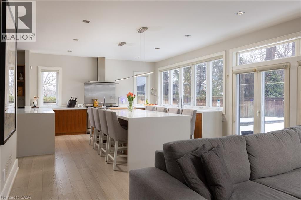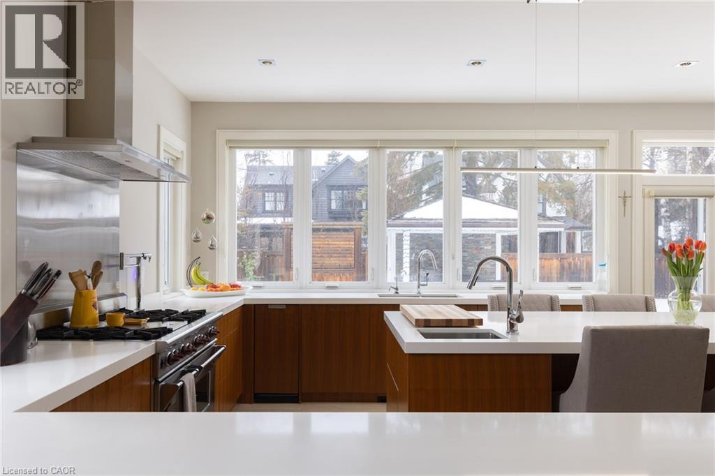 This completely renovated contemporary residence represents the pinnacle of modern design and sophisticated living in one of Oakville's most desirable locations of Old Oakville. Every detail of this 4 Bedroom | 4+1 Bathrooms | 4,819 Sq Ft Finished Living Space has been meticulously reimagined to deliver an unparalleled standard of quality and craftsmanship.The highly functional main floor plan centers around an exceptionally sleek kitchen open to the Great Room with gas fireplace and walk out to the resort style backyard and pool.The kitchen is outfitted with luxury high-end appliances, an oversized island seating eight, and an additional peninsula for casual entertaining in the bar area. Adjacent to the kitchen, is a walk in pantry with an additional dishwasher and fridge. Not to be missed is the impressive temperature-controlled wine room accommodates approximately 1,000 bottles—a striking feature for the discerning entertainer. A versatile family room/main floor bedroom with ensuite which can be used as a principal bedroom or guest suite, laundry room, walk-in main closet for storage and access to oversized double car garage. The 2nd level principal suite is a private sanctuary featuring juliette balcony, gas fireplace, two walk-in closets and a spa-inspired ensuite with heated floors, walk-in shower, and a standalone soaking tub.Two additional spacious bedrooms each with their own ensuites complete the level. Not to be missed is the finished lower level room with added storage in the pantry and crawl space area. The backyard is an entertainer's paradise, showcasing a saltwater pool, two expansive patio areas, two gazebos with a gas fire table, and premium Dutch-imported artificial turf that remains lush year-round with zero maintenance. Ideally situated steps from Whole Foods Market, Oakville GO Station, for seamless transit connectivity, and the Oakville Trafalgar Community Centre this extraordinary property offers both refined luxury and everyday convenience. (id:63285)