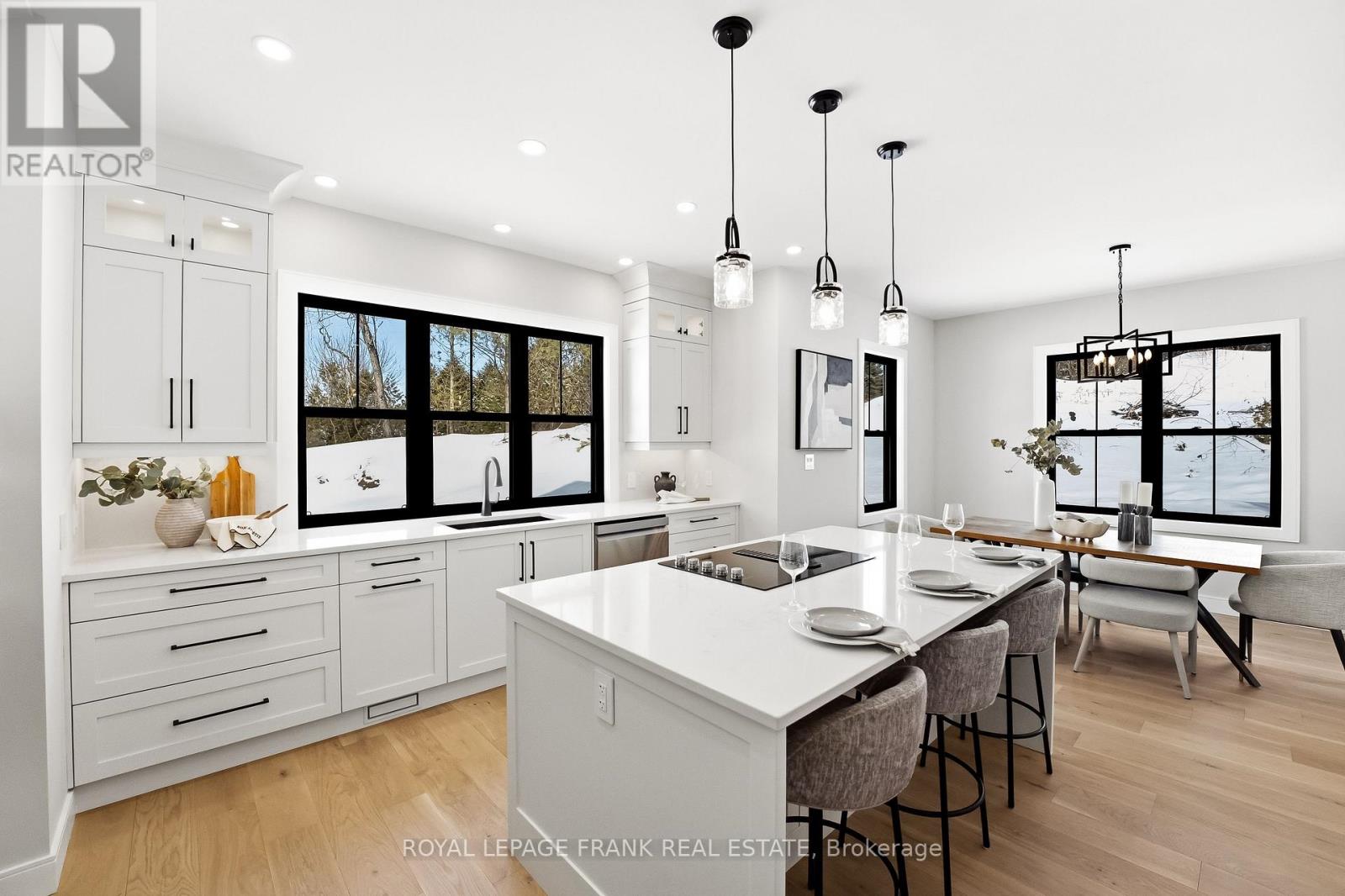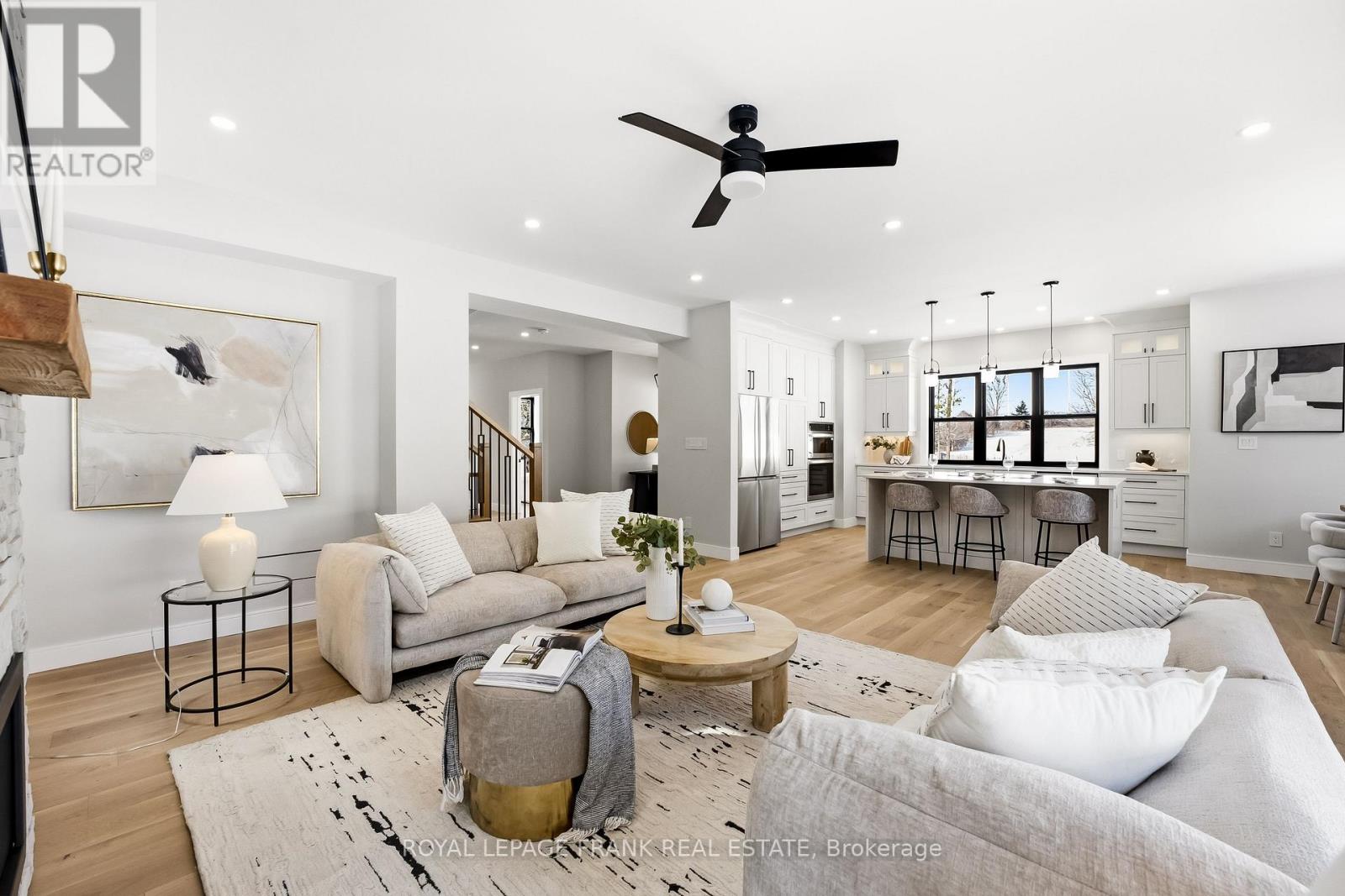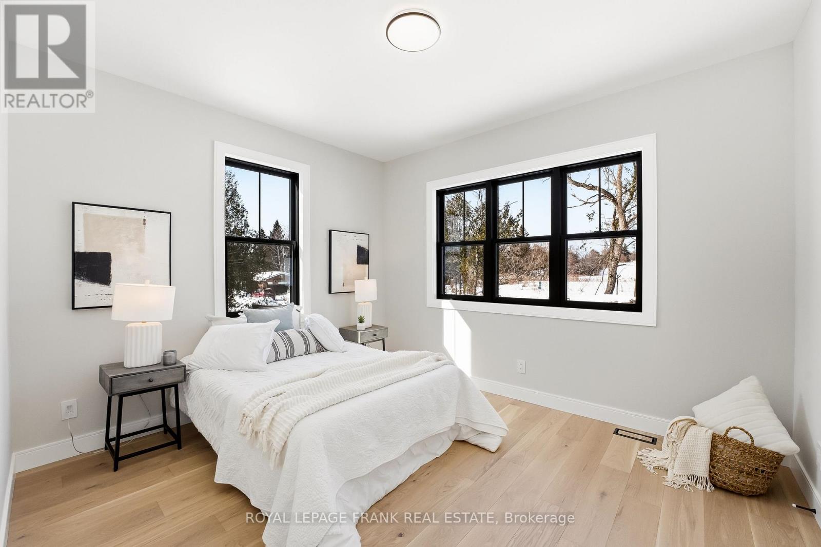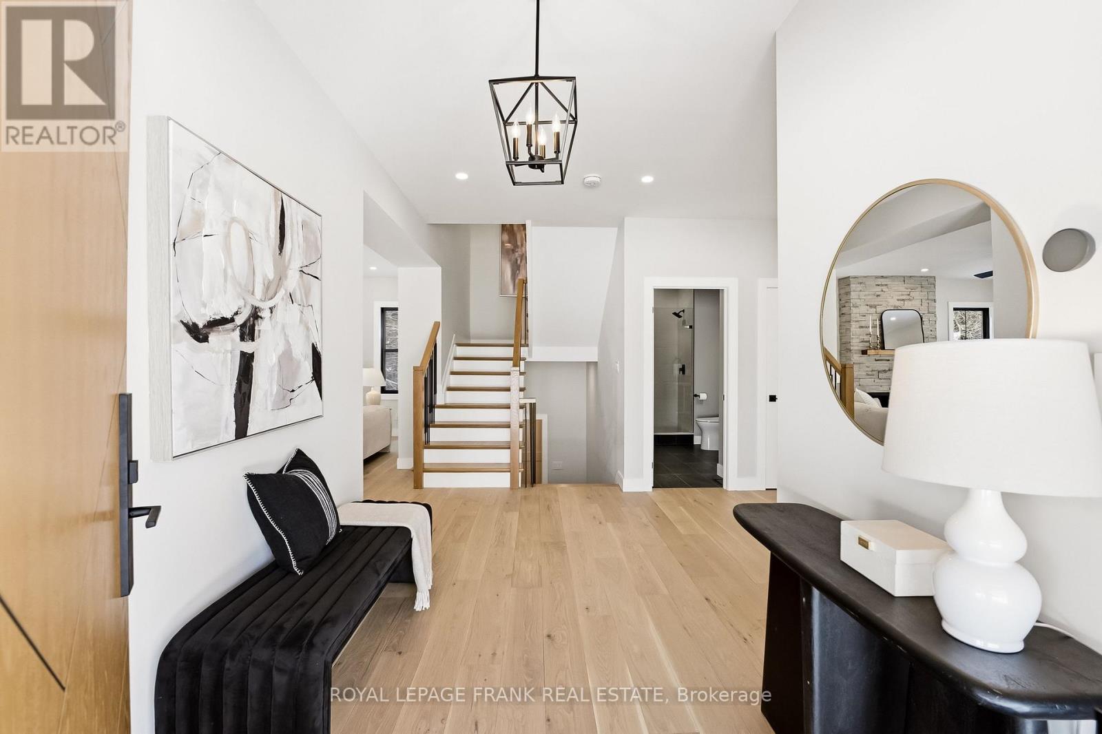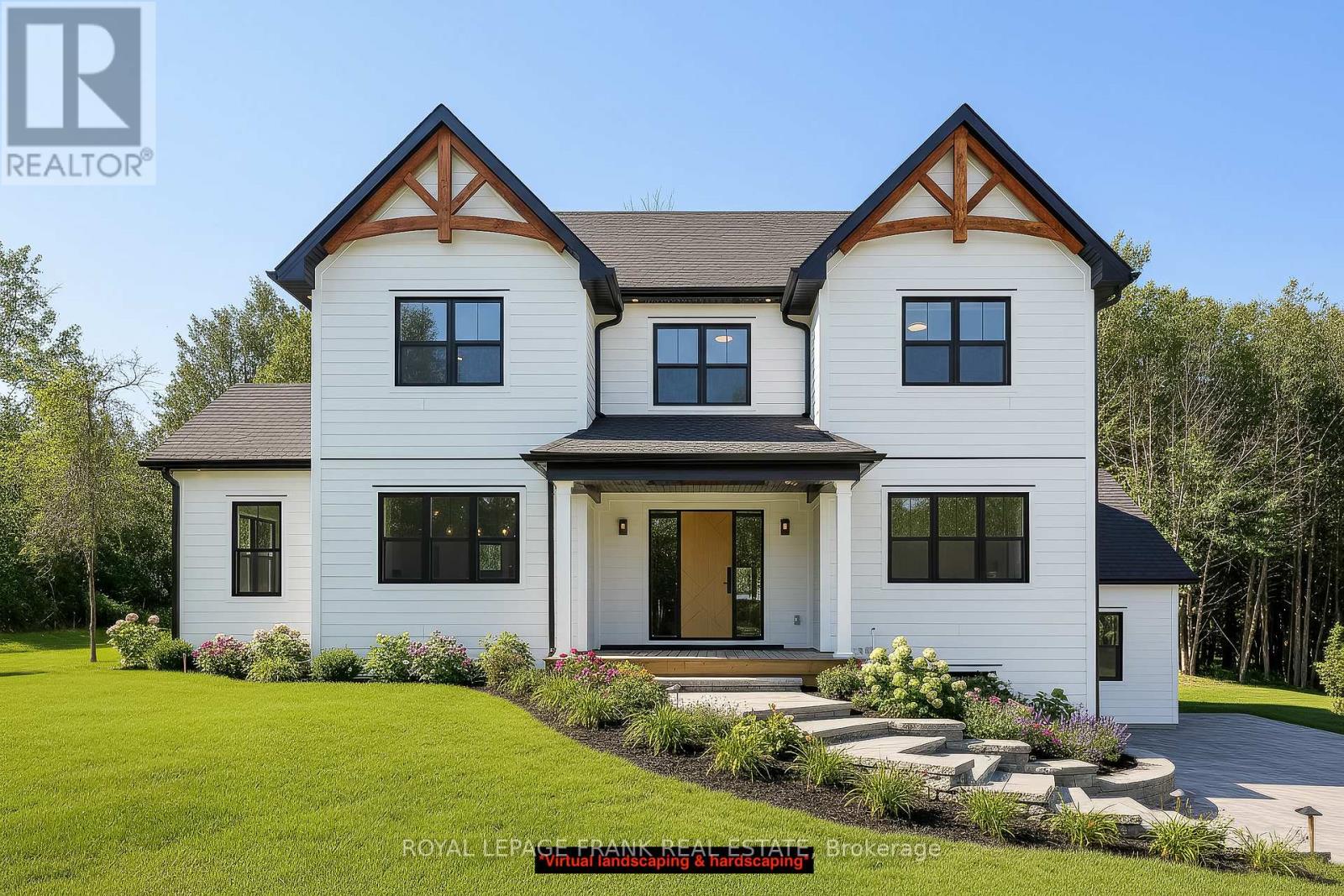 Welcome to this stunning custom-built 2-storey home, perfectly situated just minutes north of Uxbridge and directly across from Wagner's Lake. Set on a private 0.5-acre corner lot surrounded by mature trees, this home offers the ideal blend of luxury, functionality, and peaceful country living. With 2,660 sq ft above grade, the home features hardwood flooring throughout, striking black windows, and 9-foot ceilings on the main level and basement. The bright, open-concept main floor is designed for modern living, highlighted by a custom kitchen with quartz countertops, a large island with KitchenAid cooktop, LG appliances, and undercabinet lighting. The living space is anchored by a cozy propane fireplace and walkout to the backyard-perfect for entertaining. The main floor also offers a dedicated office, a spacious4th bedroom, a full 3-piece bathroom, and convenient access to the large double garage through a functional mudroom. Upstairs, you'll find three generous bedrooms, including a beautiful primary suite complete with a walk-in closet, additional closet space, and a private 4-pieceensuite. A convenient second-floor laundry room with sink adds everyday ease, while built-in closet organizers throughout maximize storage. The unfinished basement features a separate entrance, large above-grade windows, 9-foot ceilings, and a rough-in for a full bathroom-offering excellent potential for an in-law suite or additional living space. Additional features include a water softener, UV water system, and 200-amp service. The exterior is finished with durable LP Smart Side engineered siding, composite decking on the covered front porch, timber gables, and stylish exterior lighting with pot lights. The large driveway and double garage provide ample parking space. A rare opportunity to enjoy modern finishes, thoughtful design, and a tranquil setting just steps from Wagner's Lake while also benefitting from ease of access to Uxbridge just a few short minutes away! (id:63285)