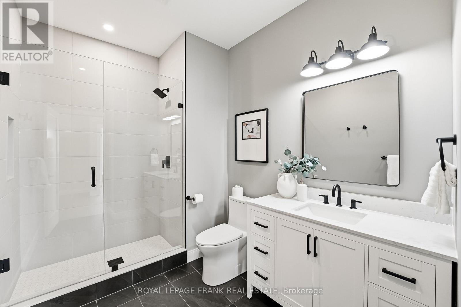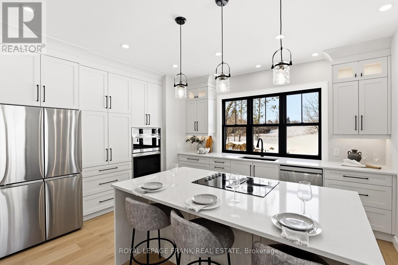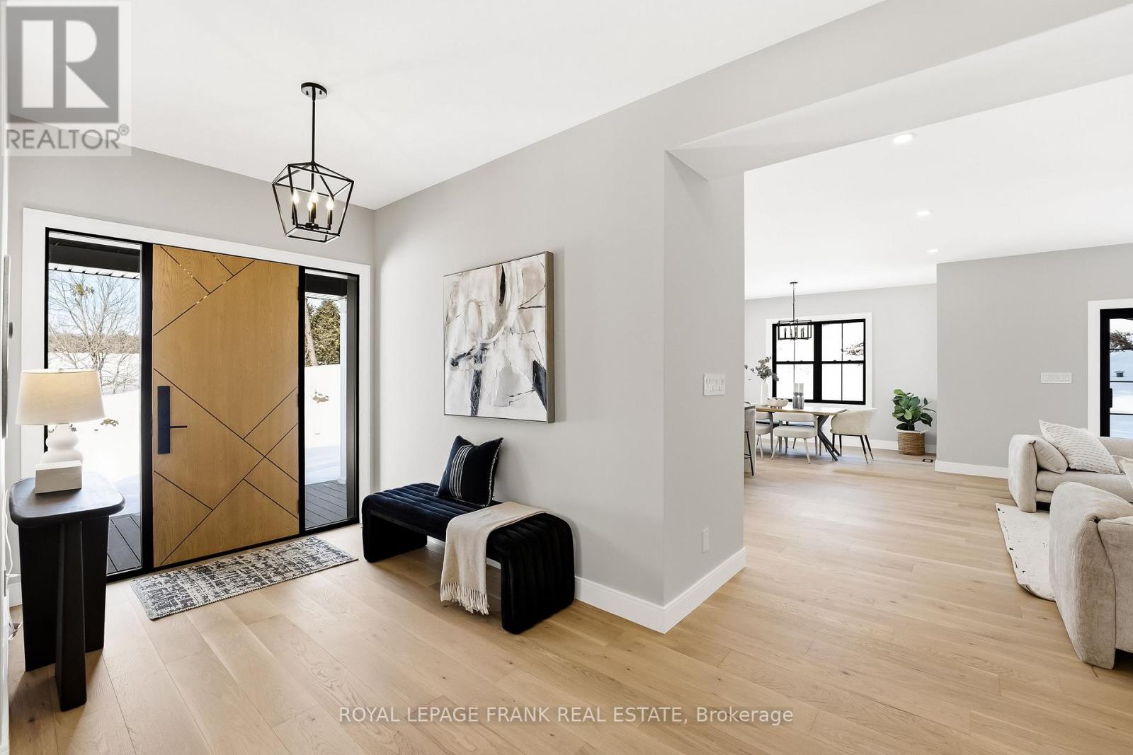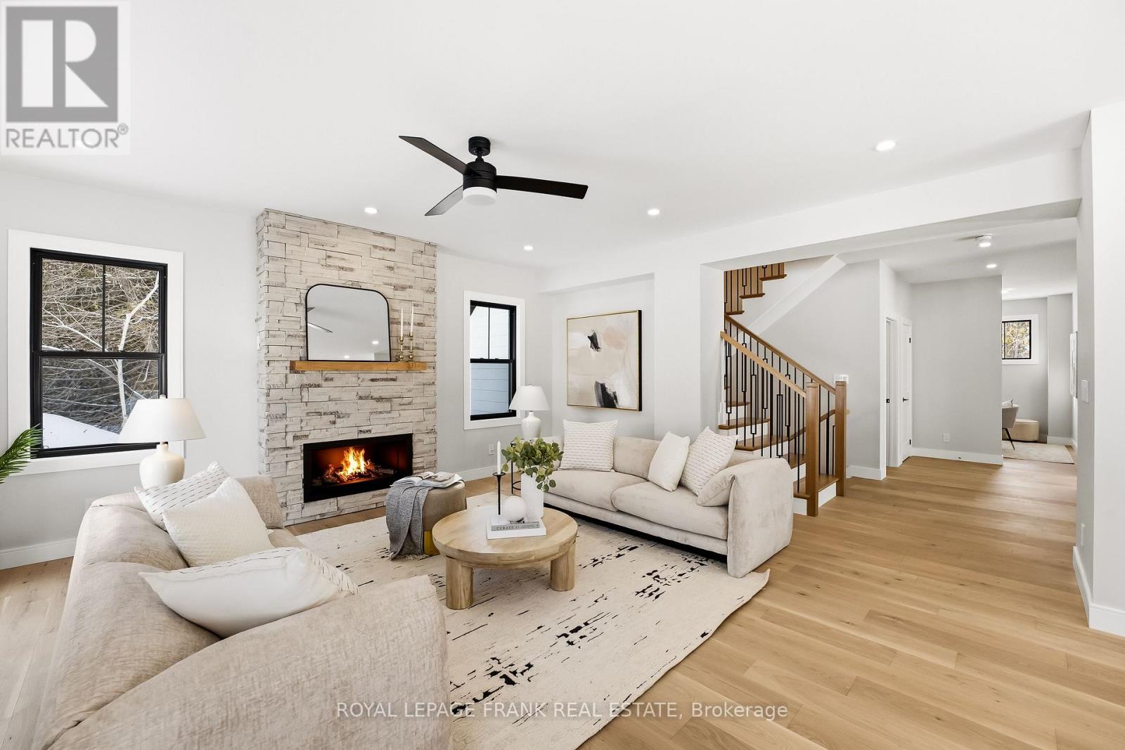 Welcome to this stunning custom-built 2-storey home, perfectly situated just minutes north of Uxbridge and directly across from Wagner's Lake. Set on a private 0.5-acre corner lot surrounded by mature trees, this home offers the ideal blend of luxury, functionality, and peaceful country living. With 2,660 sq ft above grade, the home features hardwood flooring throughout, striking black windows, and 9-foot ceilings on the main level and basement. The bright, open-concept main floor is designed for modern living, highlighted by a custom kitchen with quartz countertops, a large island with KitchenAid cooktop, LG appliances, and undercabinet lighting. The living space is anchored by a cozy propane fireplace and walkout to the backyard-perfect for entertaining. The main floor also offers a dedicated office, a spacious4th bedroom, a full 3-piece bathroom, and convenient access to the large double garage through a functional mudroom. Upstairs, you'll find three generous bedrooms, including a beautiful primary suite complete with a walk-in closet, additional closet space, and a private 4-pieceensuite. A convenient second-floor laundry room with sink adds everyday ease, while built-in closet organizers throughout maximize storage. The unfinished basement features a separate entrance, large above-grade windows, 9-foot ceilings, and a rough-in for a full bathroom-offering excellent potential for an in-law suite or additional living space. Additional features include a water softener, UV water system, and 200-amp service. The exterior is finished with durable LP Smart Side engineered siding, composite decking on the covered front porch, timber gables, and stylish exterior lighting with pot lights. The large driveway and double garage provide ample parking space. A rare opportunity to enjoy modern finishes, thoughtful design, and a tranquil setting just steps from Wagner's Lake while also benefitting from ease of access to Uxbridge just a few short minutes away! (id:63285)