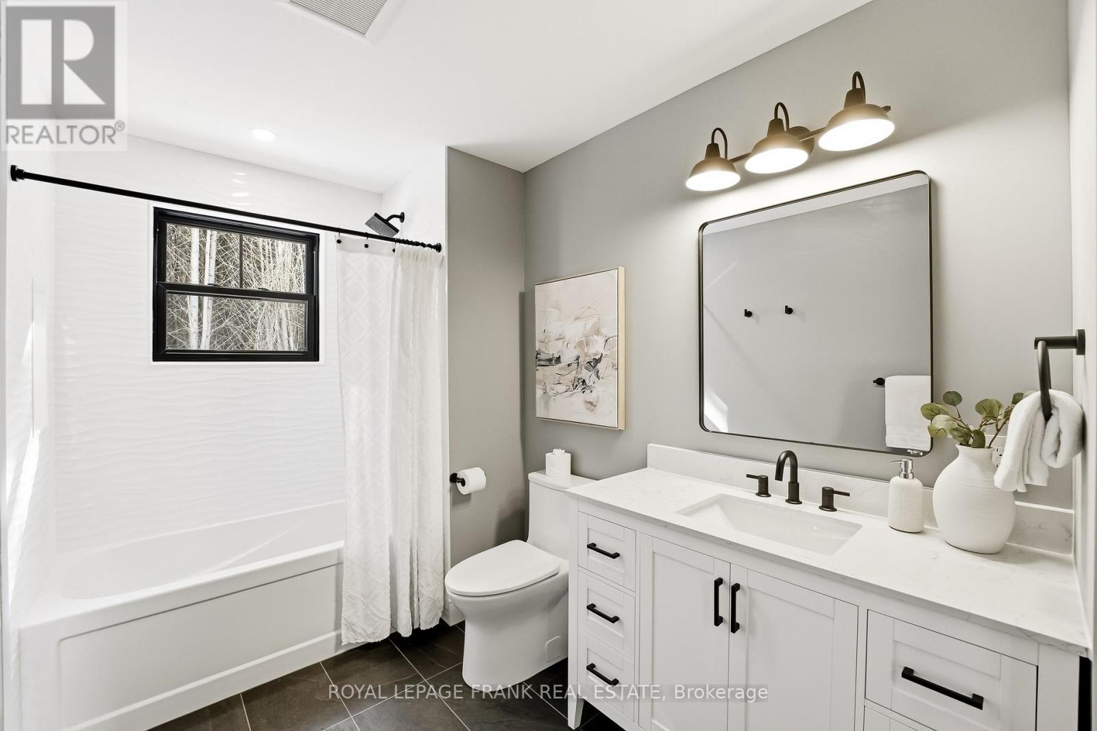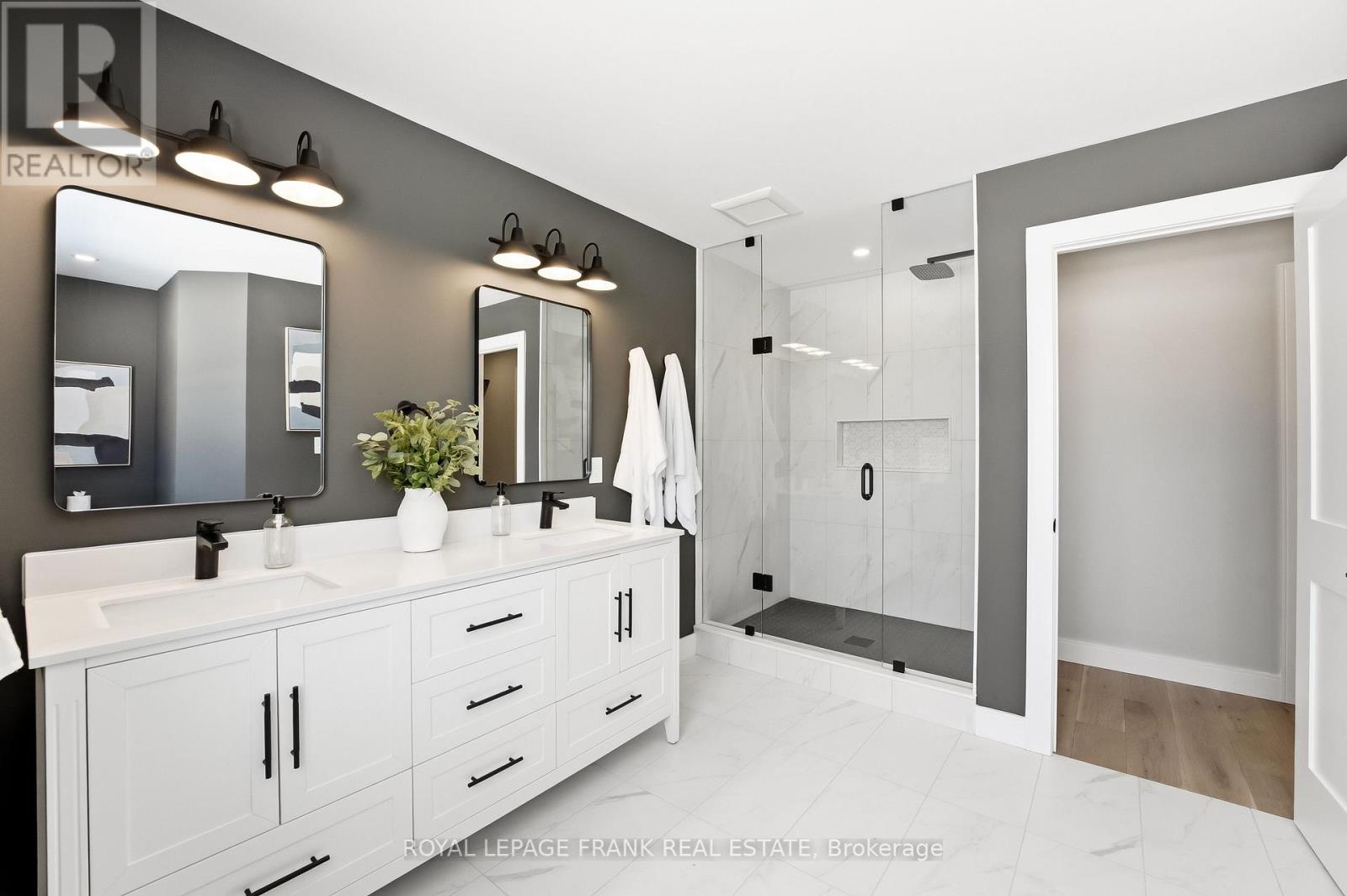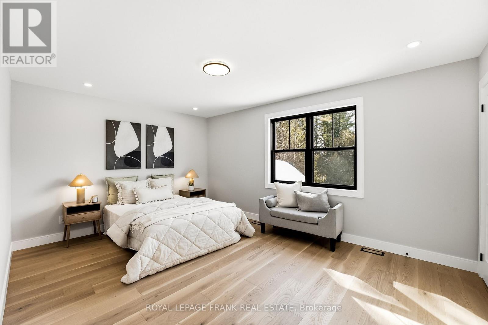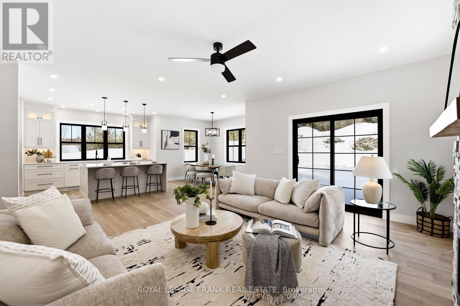 Welcome to this stunning custom-built 2-storey home, perfectly situated just minutes north of Uxbridge and directly across from Wagner's Lake. Set on a private 0.5-acre corner lot surrounded by mature trees, this home offers the ideal blend of luxury, functionality, and peaceful country living. With 2,660 sq ft above grade, the home features hardwood flooring throughout, striking black windows, and 9-foot ceilings on the main level and basement. The bright, open-concept main floor is designed for modern living, highlighted by a custom kitchen with quartz countertops, a large island with KitchenAid cooktop, LG appliances, and undercabinet lighting. The living space is anchored by a cozy propane fireplace and walkout to the backyard-perfect for entertaining. The main floor also offers a dedicated office, a spacious4th bedroom, a full 3-piece bathroom, and convenient access to the large double garage through a functional mudroom. Upstairs, you'll find three generous bedrooms, including a beautiful primary suite complete with a walk-in closet, additional closet space, and a private 4-pieceensuite. A convenient second-floor laundry room with sink adds everyday ease, while built-in closet organizers throughout maximize storage. The unfinished basement features a separate entrance, large above-grade windows, 9-foot ceilings, and a rough-in for a full bathroom-offering excellent potential for an in-law suite or additional living space. Additional features include a water softener, UV water system, and 200-amp service. The exterior is finished with durable LP Smart Side engineered siding, composite decking on the covered front porch, timber gables, and stylish exterior lighting with pot lights. The large driveway and double garage provide ample parking space. A rare opportunity to enjoy modern finishes, thoughtful design, and a tranquil setting just steps from Wagner's Lake while also benefitting from ease of access to Uxbridge just a few short minutes away! (id:63285)