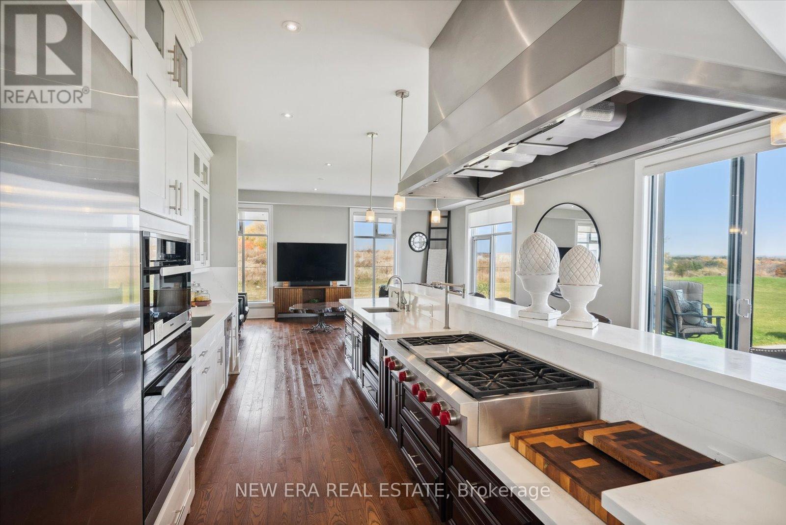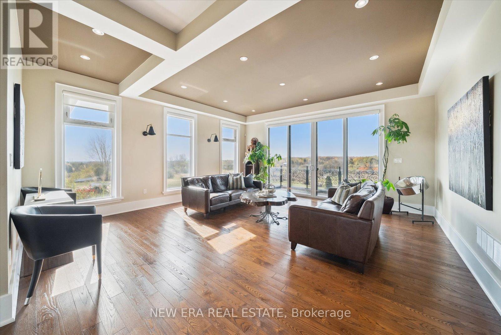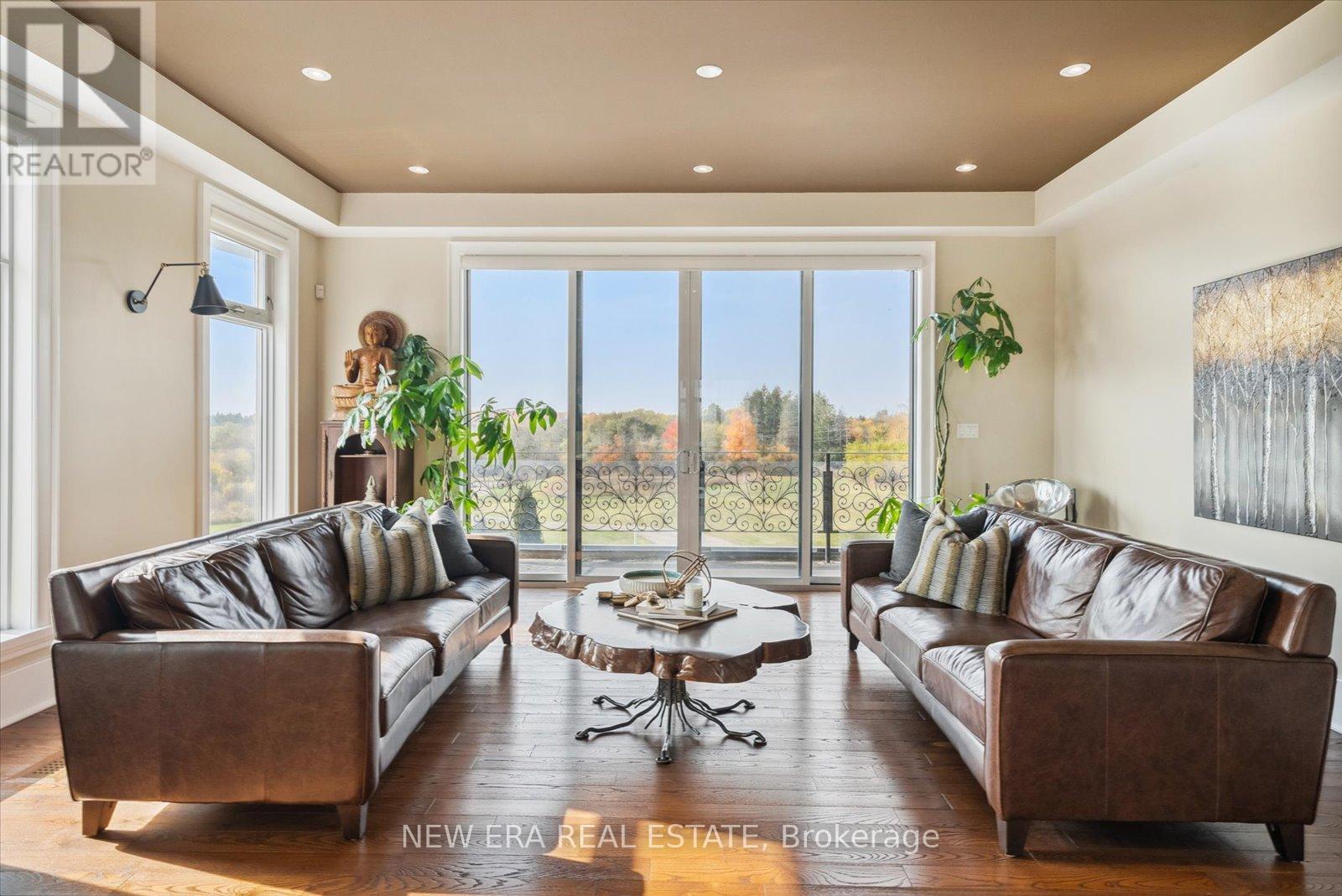 Power of Sale (mortgage foreclosure) opportunity with financing available. The vendor is willing to provide a first mortgage loan of up to $2,000,000 at a competitive interest rate, offering a rare and flexible financing opportunity for qualified buyers. Built only 10 years ago, this custom 7 bedroom, 8 bathroom estate is privately set behind gates on a serene premium 6+ acre lot. Designed for tranquility, security, and privacy, the fully fenced property features a scenic natural water feature and expansive sports court, creating a resort-style atmosphere.The heart of the home is an impressive open-concept kitchen anchored by a stunning 25-foot quartz centre island with abundant seating, complete with a Wolf gas stove, dual Sub-Zero refrigerators, two Miele built-in ovens, under-cabinet lighting, and premium finishes throughout. The kitchen flows seamlessly into the family and dining areas with walkout access to the backyard patio overlooking the scenic grounds.A separate formal living room opens onto a balcony spanning the front of the home. The main floor also offers a private in-law suite with coffee bar, two bedrooms, 3-piece bath, and a dedicated office. Upstairs features five generously sized bedrooms, each with its own ensuite, plus a convenient second-floor laundry room.The primary suite includes a walk-in closet with custom shelving and a spa-inspired 5-piece ensuite with steam shower, fireplace, and Juliette balcony. The fully finished basement features radiant heated floors. Additional highlights include geothermal heating, gated and fenced grounds, a 5-car garage, and custom motorized blinds with individual remotes. A rare opportunity to own a private estate with flexible vendor financing in place. (id:63285)