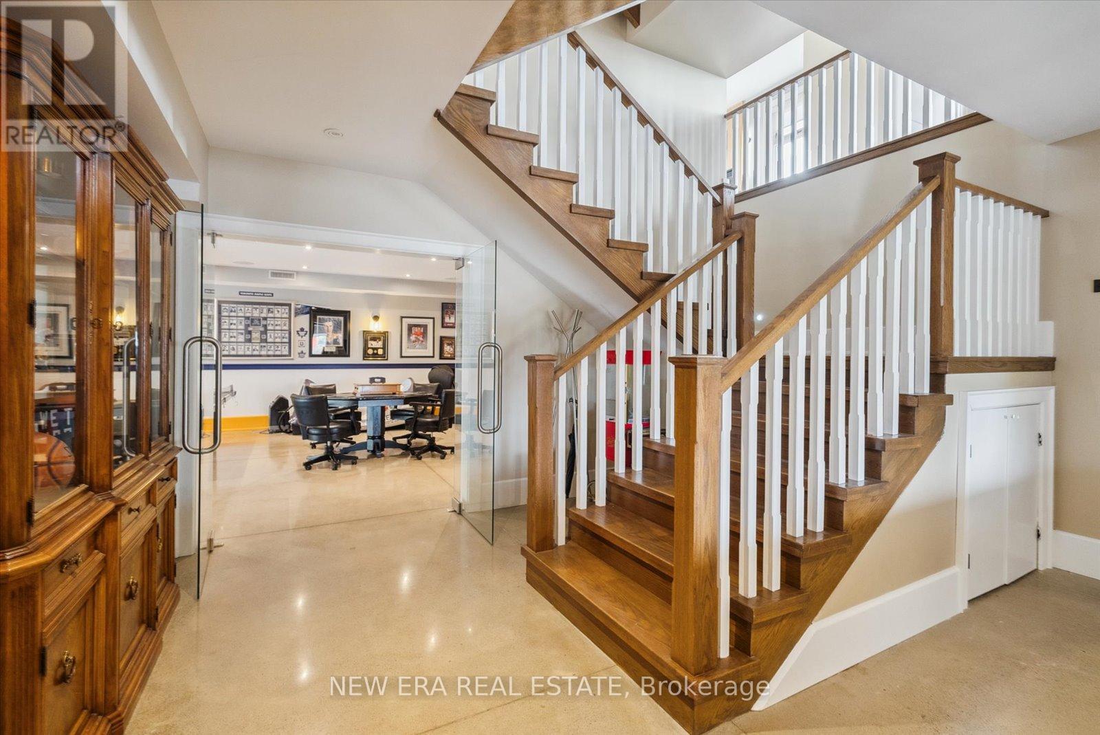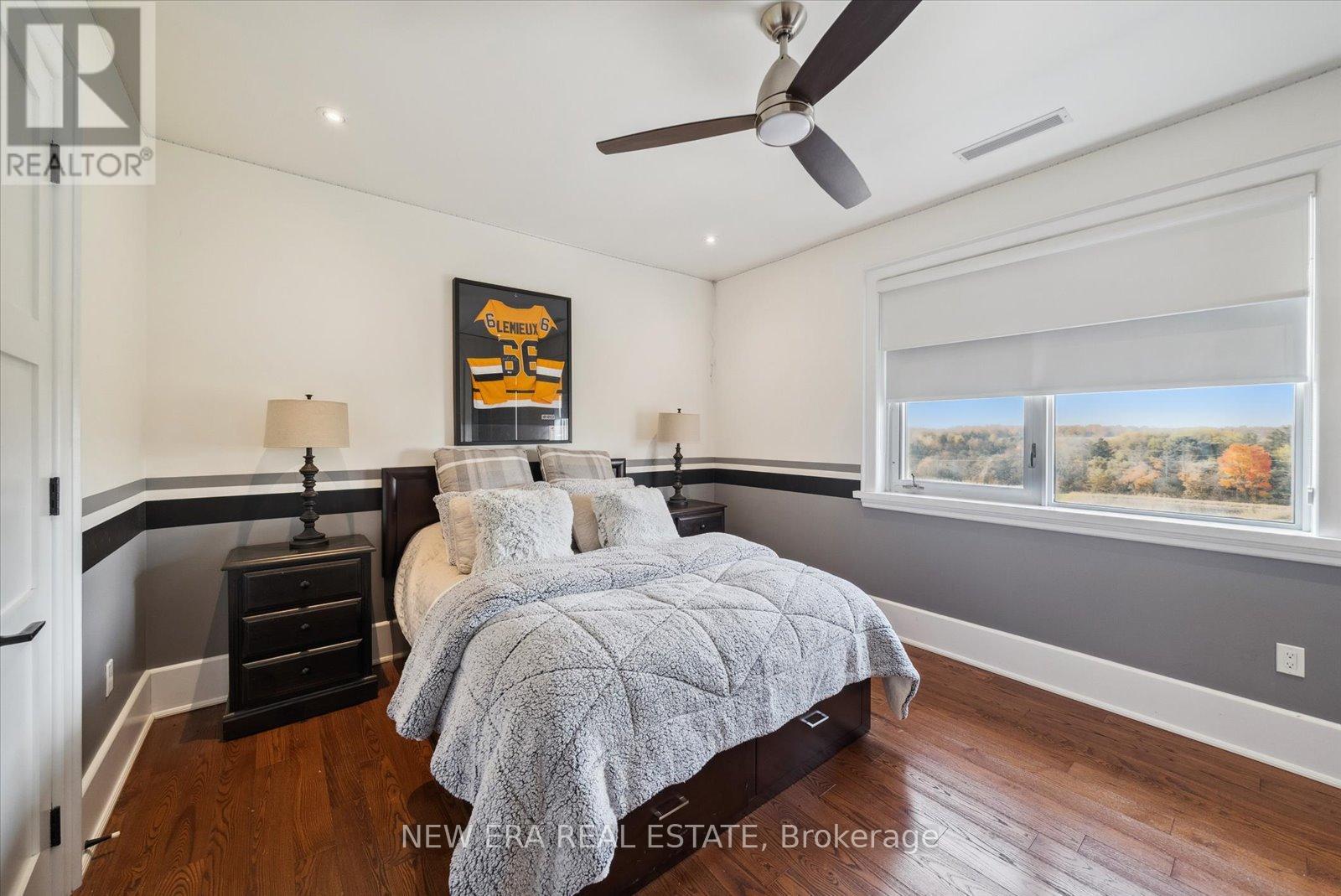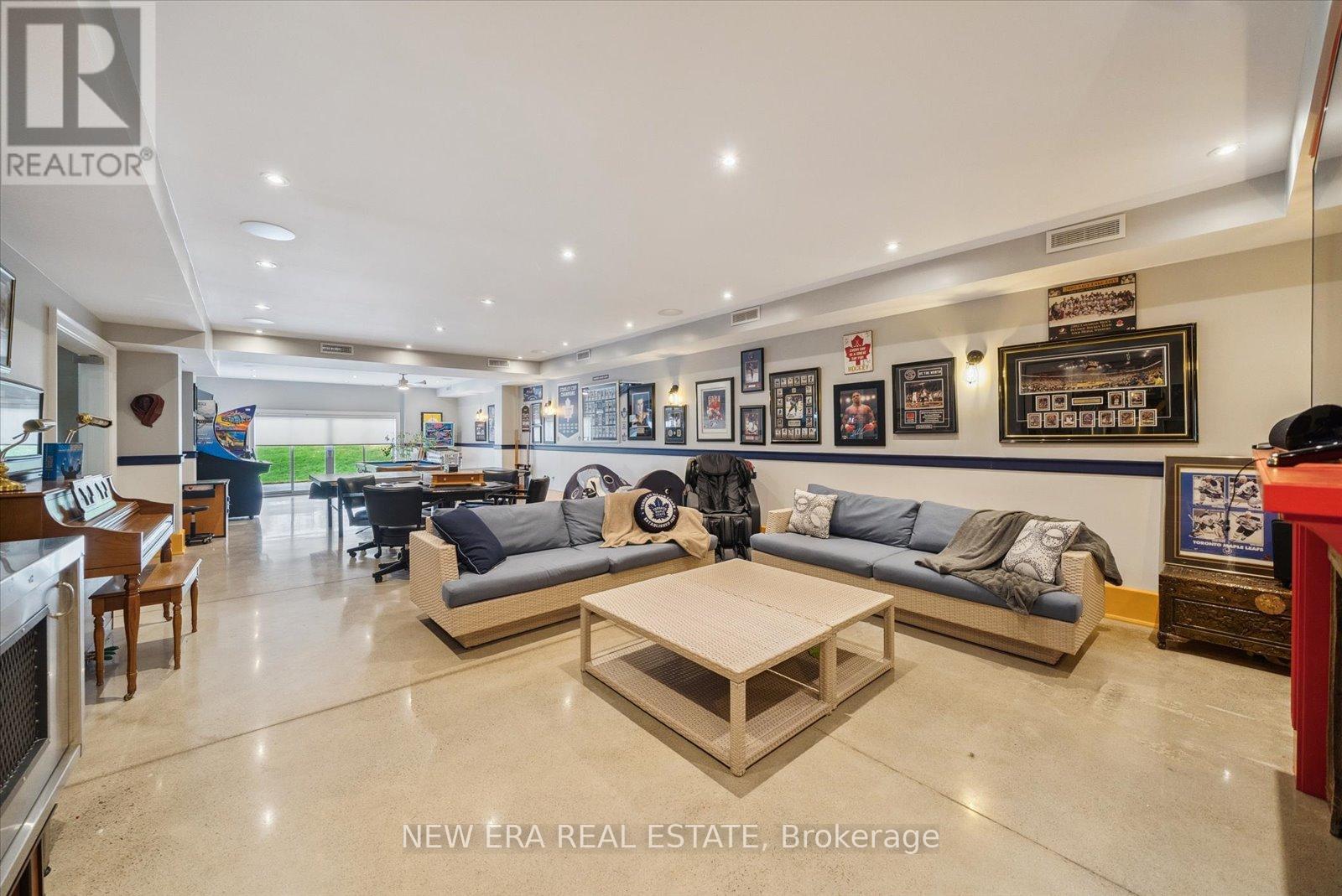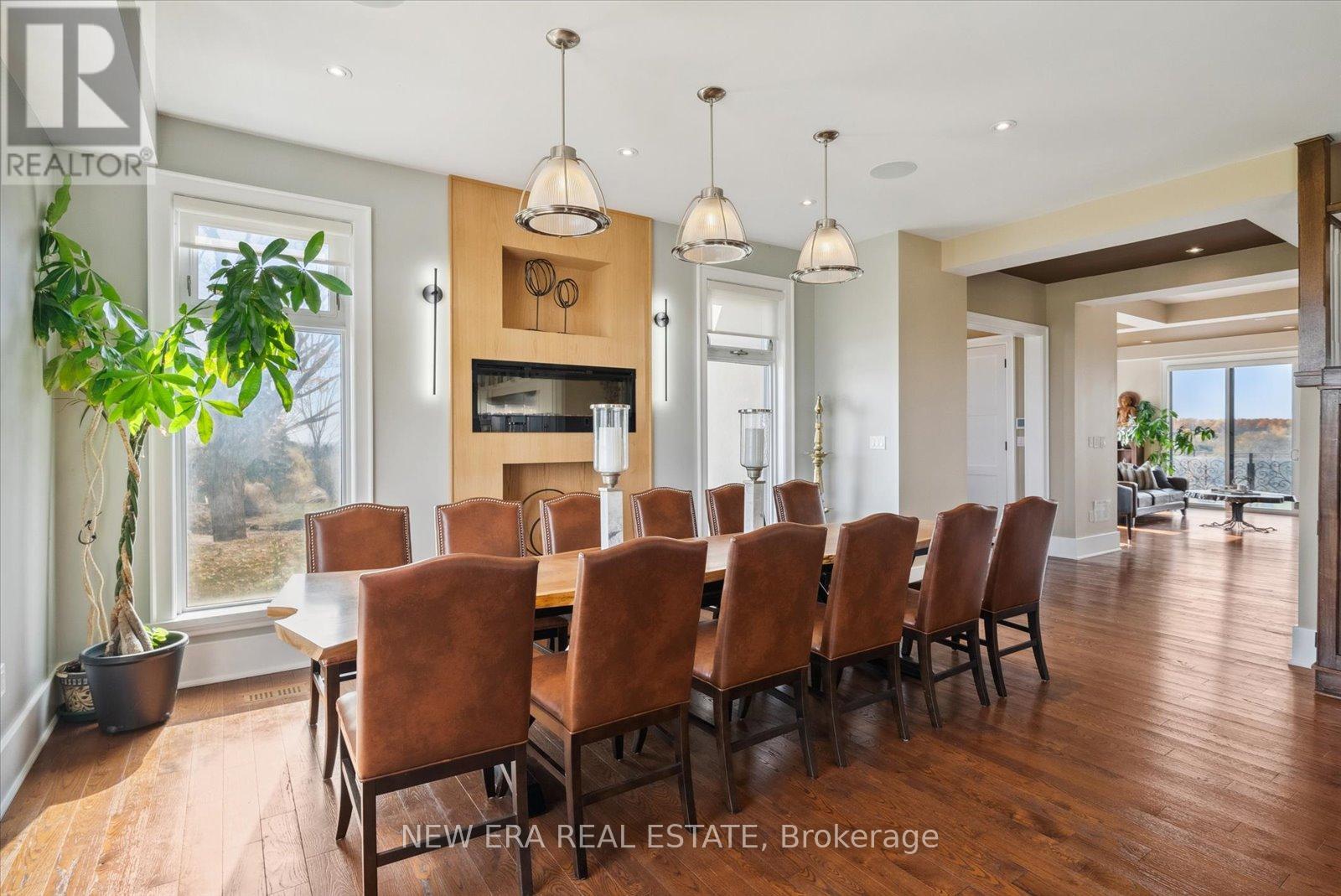 Power of Sale (mortgage foreclosure) opportunity with financing available. The vendor is willing to provide a first mortgage loan of up to $2,000,000 at a competitive interest rate, offering a rare and flexible financing opportunity for qualified buyers. Built only 10 years ago, this custom 7 bedroom, 8 bathroom estate is privately set behind gates on a serene premium 6+ acre lot. Designed for tranquility, security, and privacy, the fully fenced property features a scenic natural water feature and expansive sports court, creating a resort-style atmosphere.The heart of the home is an impressive open-concept kitchen anchored by a stunning 25-foot quartz centre island with abundant seating, complete with a Wolf gas stove, dual Sub-Zero refrigerators, two Miele built-in ovens, under-cabinet lighting, and premium finishes throughout. The kitchen flows seamlessly into the family and dining areas with walkout access to the backyard patio overlooking the scenic grounds.A separate formal living room opens onto a balcony spanning the front of the home. The main floor also offers a private in-law suite with coffee bar, two bedrooms, 3-piece bath, and a dedicated office. Upstairs features five generously sized bedrooms, each with its own ensuite, plus a convenient second-floor laundry room.The primary suite includes a walk-in closet with custom shelving and a spa-inspired 5-piece ensuite with steam shower, fireplace, and Juliette balcony. The fully finished basement features radiant heated floors. Additional highlights include geothermal heating, gated and fenced grounds, a 5-car garage, and custom motorized blinds with individual remotes. A rare opportunity to own a private estate with flexible vendor financing in place. (id:63285)