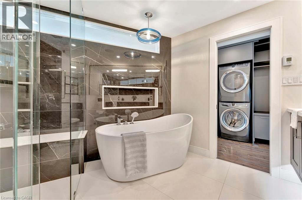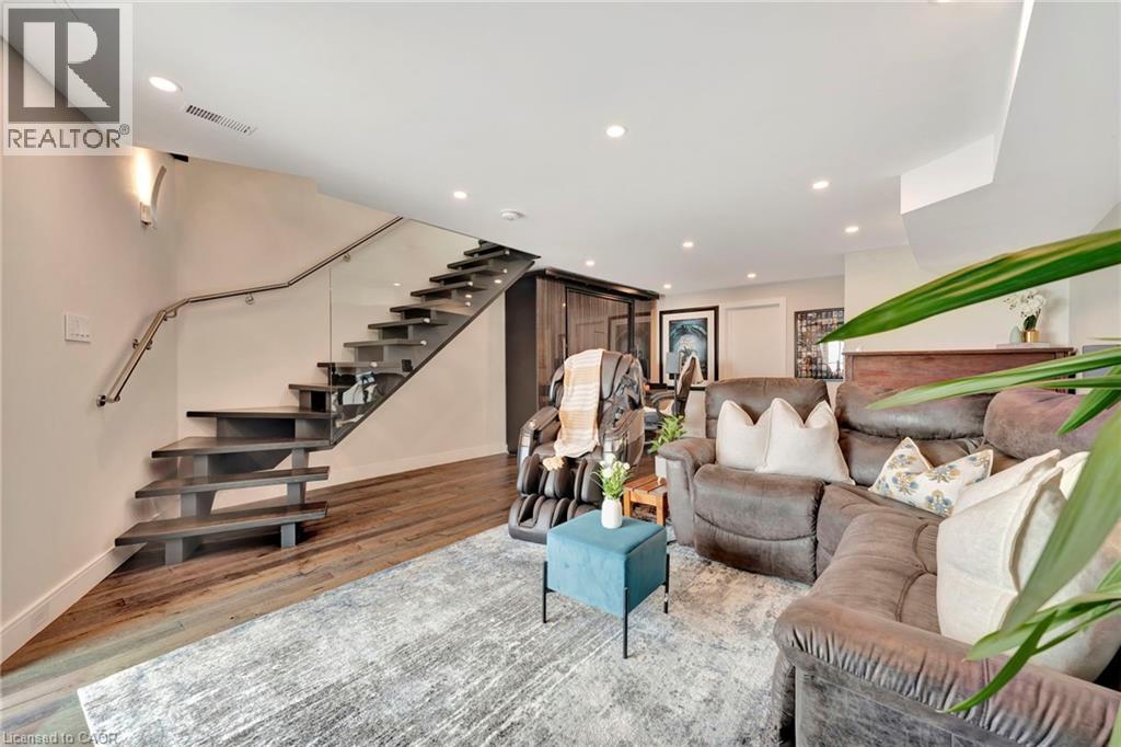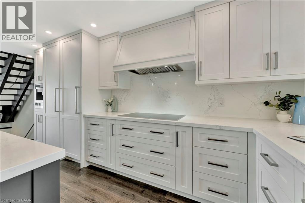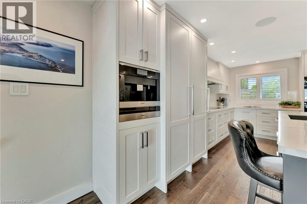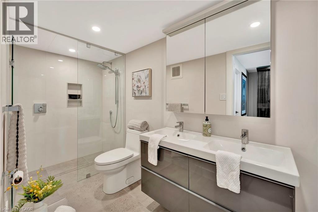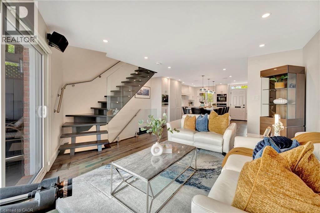 Welcome to the ultimate lakefront lifestyle. This fully renovated 3-level townhouse hass unobstructed, panoramic views of Lake Ontario so close to the water, you can practically dip your toes in. Located just 600 metres from downtown Burlington, this is a rare blend of tranquility and convenience. This 3-level townhouse (1,600 plus SF) has 1 bedrooms (potential for 2nd if you converted large walk-in closet back into a bedroom), 3 bathrooms (2 full, 1 powder) and 4 separate patio/terraces (huge 400 SF lower terrace at the water's edge). In 2020 this unit was completely gutted to the studs and rebuilt by the renowned Bespoke Home Solutions with a total renovation budget exceeding $500K . The gourmet kitchen has been masterfully crafted with designer finishes including: Insinkerator food waste disposal, hot water tank/dispenser, Porter & Charles warming drawer, Built in Miele Appliances (including a $7K plumbed in Coffee Machine), microwave/convection oven, Combi Steam Oven, Dacor Fridge & Freezer and Gravelle custom cabinetry throughout. The spacious primary suite is a true retreat, featuring a spa-inspired ensuite with heated floors, a two-person soaker tub, and a private balcony with stunning sunrise views over the lake. The second bedroom has been converted into a designer walk-in closet with custom cabinetry and a centre island (easily reverted to a bedroom if desired). Lower level family room has a full bathroom, ample storage and ability to have a guest suite with use of a murphy bed. Backwater valve in basement. Home is equipped with Sonos built in ceiling speakers with hooked up amplifiers and speaker selector options. Large 400 SF back terrace is fashioned with a BBQ gas line and has a hook up for a Hot Tub. (id:63285)