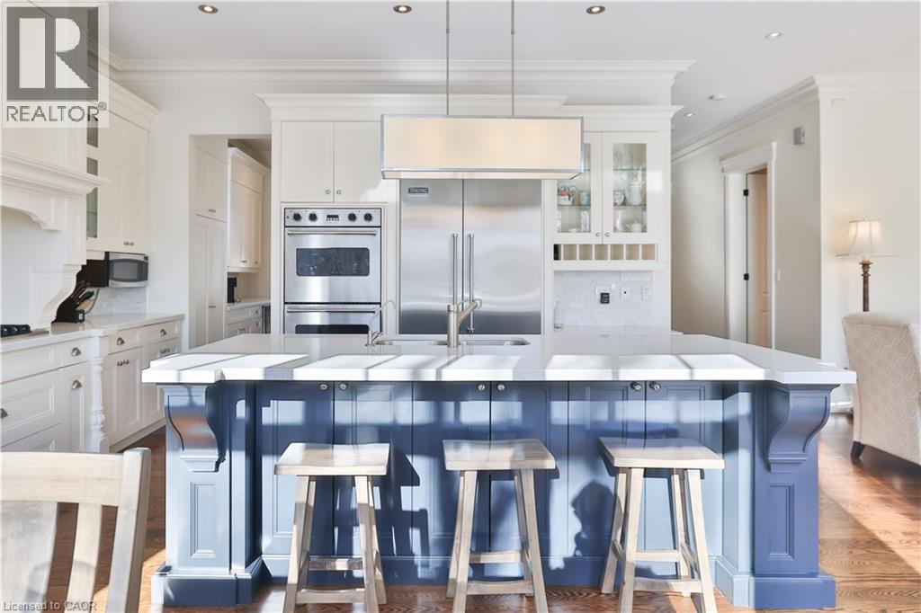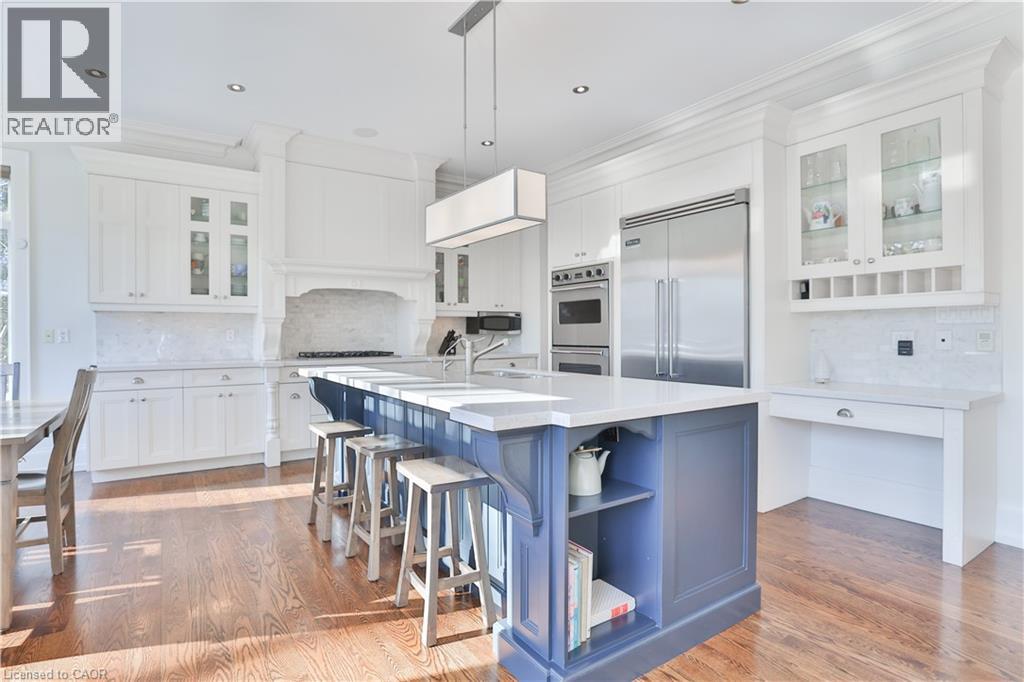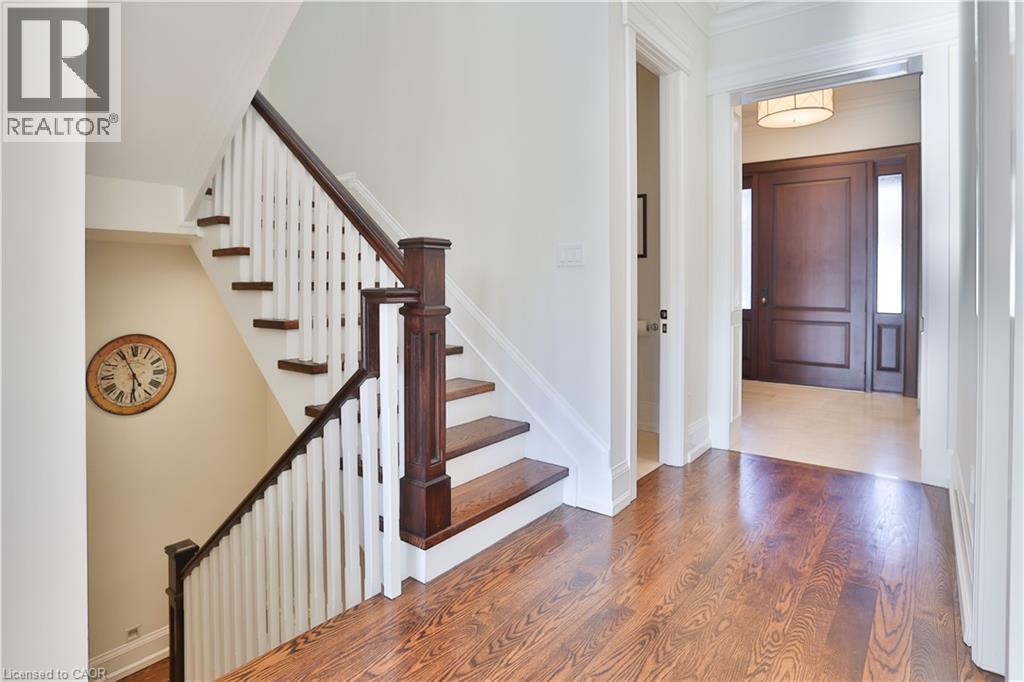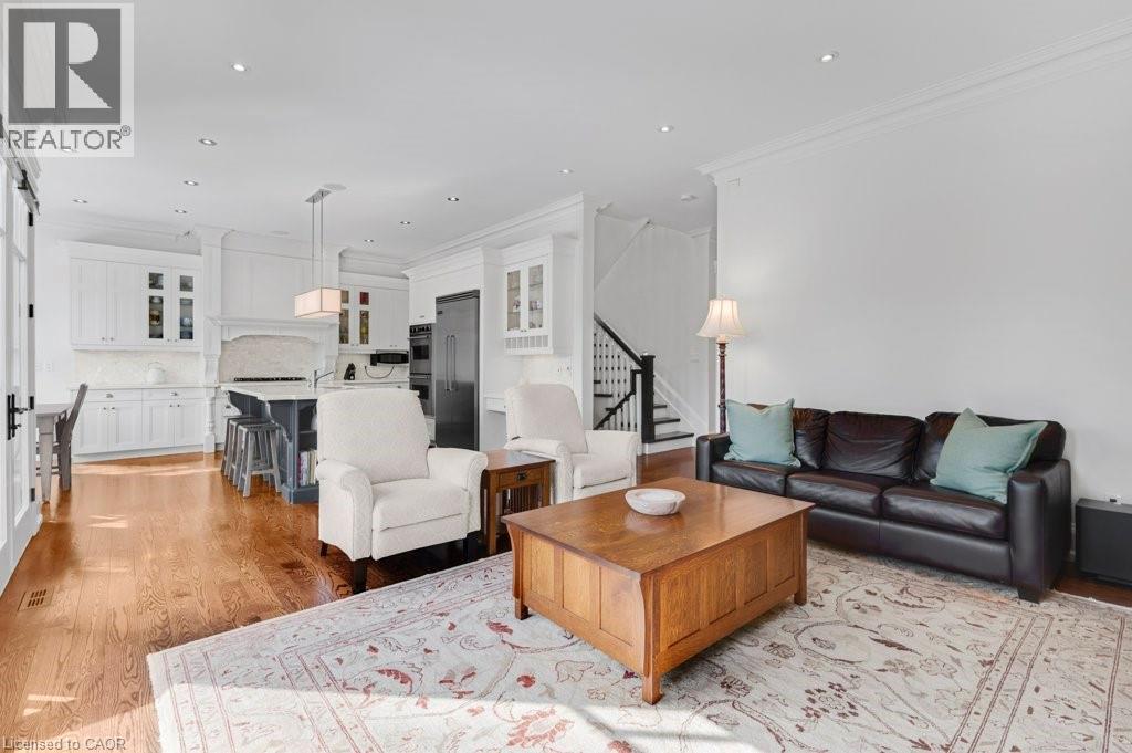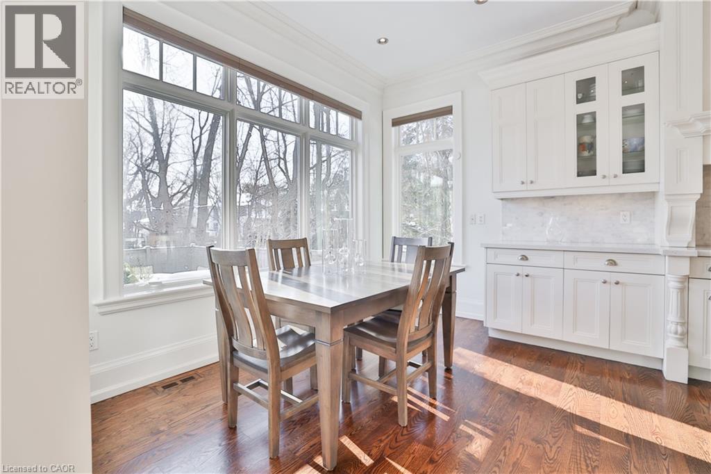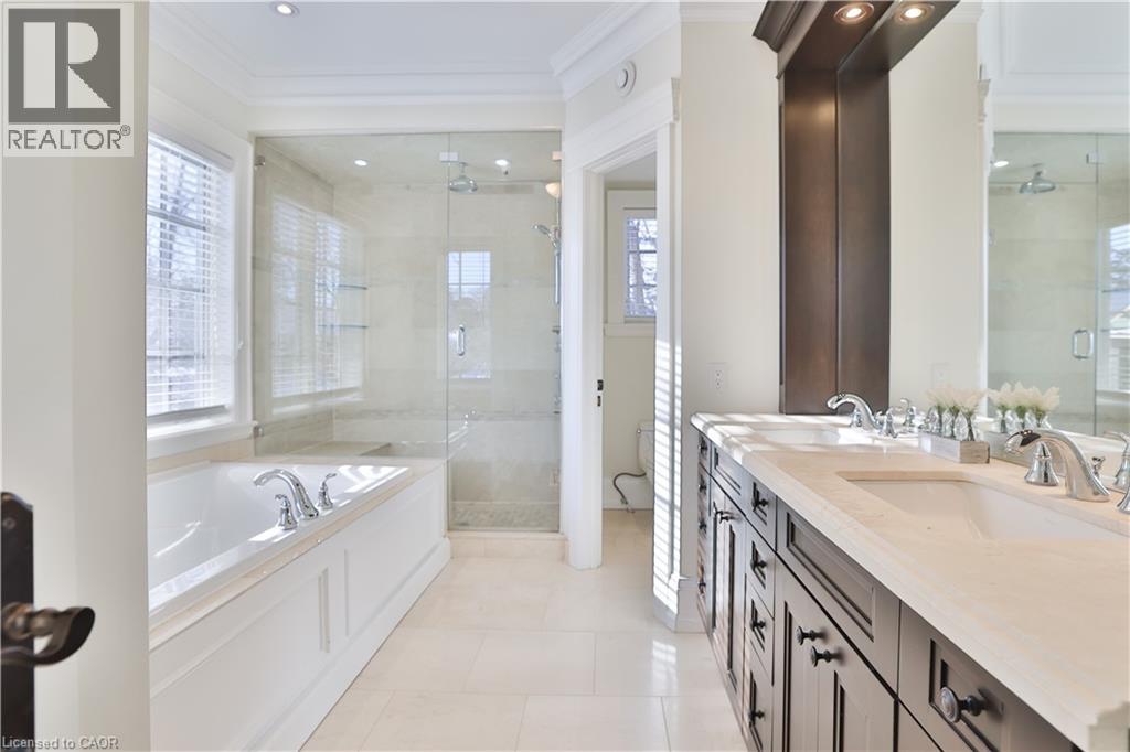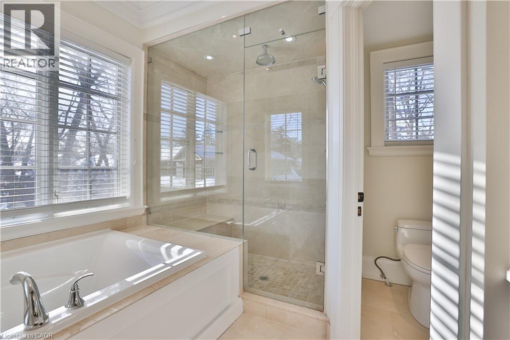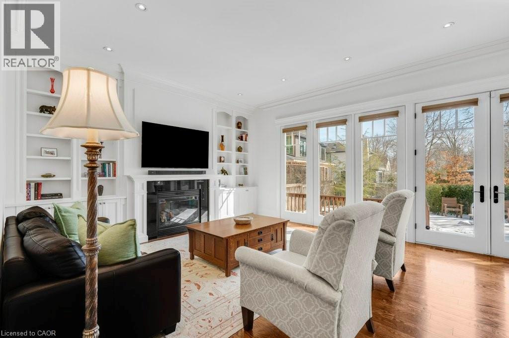 One of the best locations in old Oakville! This exceptional custom home on a quiet side street features a bright freshly painted interior with 10' main floor ceilings, crown mouldings, 3 gas fireplaces, a Control4 full house hard wired entertainment system, elevator rough-in, and site-finished oak hardwood throughout. The main floor features an bright open-concept kitchen, breakfast, and family room area with a full wall of windows overlooking the backyard. The chef’s kitchen has quartz counters, a large centre island, premium cabinetry, and Viking Professional appliances. The family room has a gas fireplace with built-in bookcases. A butler’s pantry with wine fridge and sink leads to the separate dining room finished with a coffered ceiling. The main floor mudroom offers garage access with built-in closet and storage. A powder room completes this level. The second level features 9' ceilings, a bright skylit hallway, laundry with built-ins, and 4 generously sized bedrooms. The spacious primary suite features a gas fireplace, walk-in closet, and spa-inspired ensuite. The lower level has 9' ceilings, radiant floor heating, oversized windows, a separate entrance, recreation room with built-ins, gas fireplace and wet bar. A fifth bedroom, 3-piece bath, cold room, and additional storage complete this level. A private low maintenance backyard has a south facing view which extends a full city block. It is fully landscaped with mature plantings and quality hardscaping (id:63285)