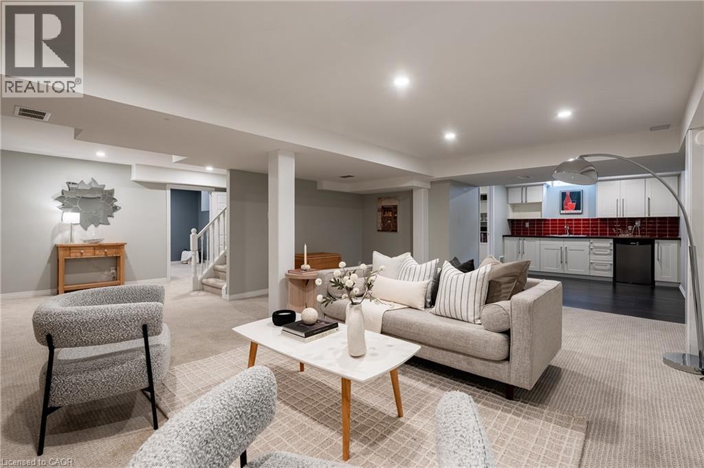 Welcome to 1225 Old Post Drive, a beautifully renovated family home on a mature, private lot in Glen Abbey’s sought-after Abbey Park school district. Extensively updated inside and out, this 4+1 bedroom residence offers refined finishes, thoughtful upgrades, and a fully finished lower level with in-law potential. The custom kitchen, renovated in 2021, features Cambria quartz counters, brass hardware, custom cabinetry, a large L-shaped island with breakfast bar, and premium Bosch appliances. Open to the sunken great room with wood-burning fireplace and custom built-ins, it creates an inviting space for everyday living and entertaining. Separate formal living and dining rooms showcase site-finished oak hardwood, including elegant herringbone detailing. Upstairs, the spacious primary suite includes a sitting area, walk-in closet, and a renovated 5-piece ensuite with freestanding soaker tub, glass shower, skylight, and double vanity. Three additional bedrooms and a renovated main bath complete the level. The finished lower level offers a large recreation area, kitchenette, office, fifth bedroom, and 3-piece bath, ideal for extended family or guests. Professionally landscaped backyard with interlocking patio and custom pergola. Major updates include furnace, A/C and 60-gallon hot water tank (2020), roof (2014), 200 amp service, renovated baths, updated lighting, and more. A turnkey opportunity in one of Oakville’s most established neighbourhoods. (id:63285)