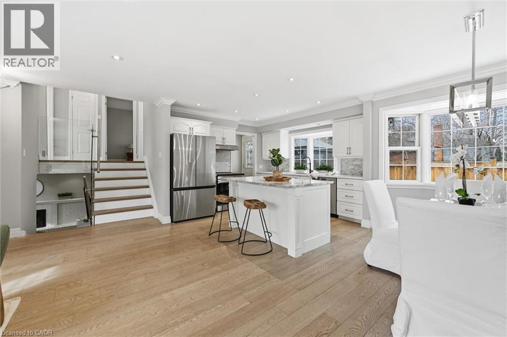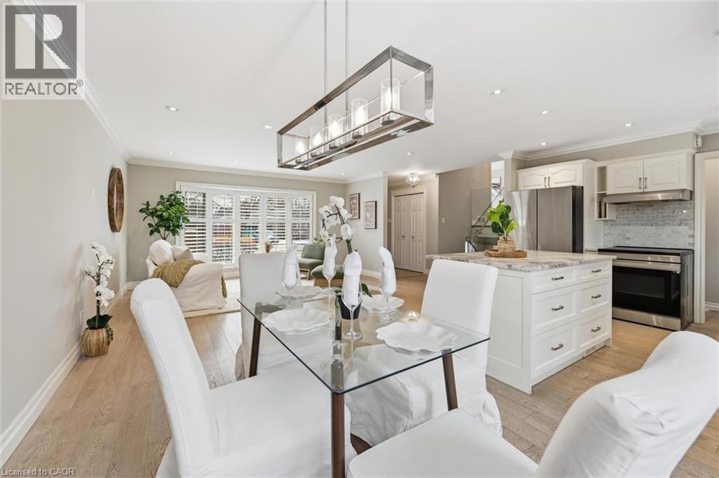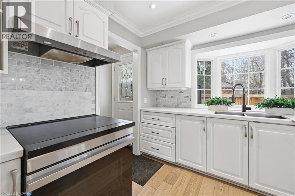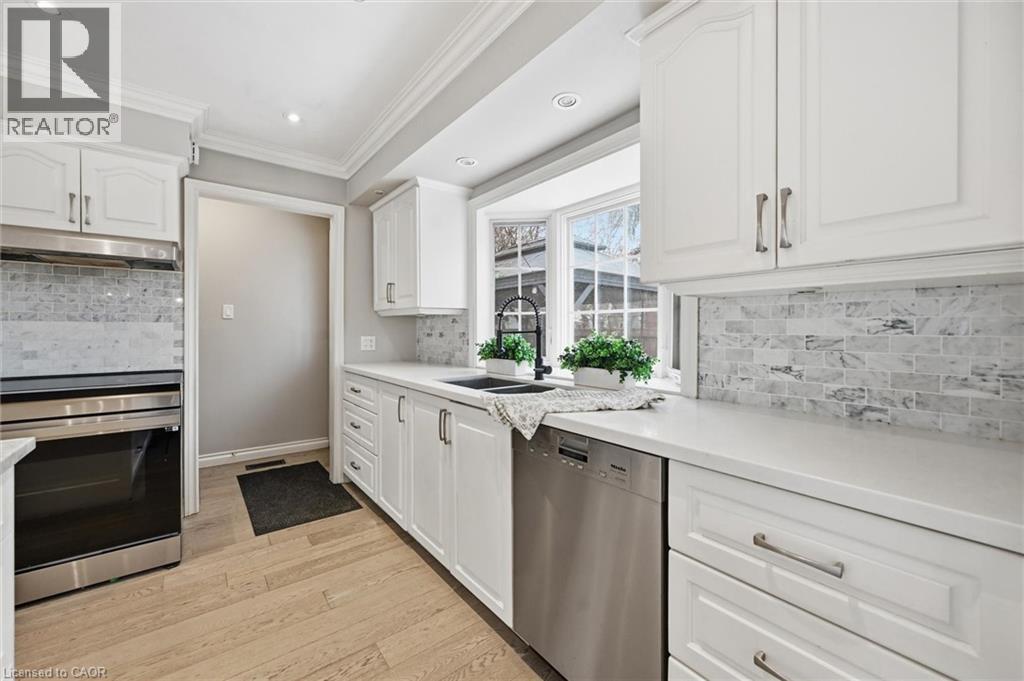 Finally! An open concept, completely renovated detached home in Elizabeth Gardens with a garage!! Which brings me to the top 7 reasons to buy this home: 1. Open concept renovated kitchen featuring timeless white cabinets, quartz counters, large eat-in island, matching backsplash, and s/s appliances. 2. Four total levels of space totalling over 2200 sqft 3. Quiet, family friendly location in Elizabeth gardens near parks, trails, only a 10 min walk down to the lake, and 8 min drive to the Appleby GO Train/QEW 4. Garage with 2 side by side driveway parking; no more juggling cars in the morning! 5. The essential 2 full bathrooms both renovated with new vanities, modern tile and light fixtures. 6. Large 65 by 115ft lot totally over 7400 sqft or .171 acres. 7. Move-in-ready condition with engineered hardwood, matching hardwood stairs, trendy glass railings, updated light fixtures and pot lights, california shutters, gas fireplace in huge lower-level family room, upgraded fencing (2019) around the whole back and side yard, large deck (2018) with pergola, roof replaced in 2018, upgraded light switches and polished nickel hardware, crown mouldings and upgraded window casings. The Seller is even offering a $5k credit on closing for landscaping improvements! But don't delay, these renovated open concept homes are very rare under 1.3m and may never be seen again! (id:63285)