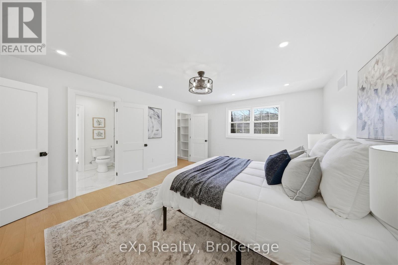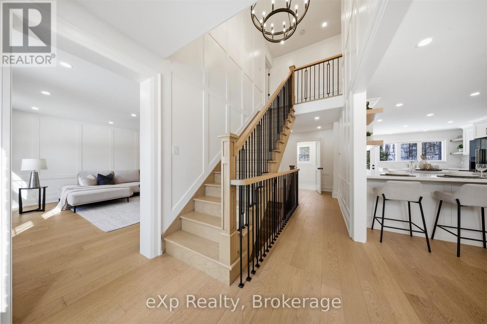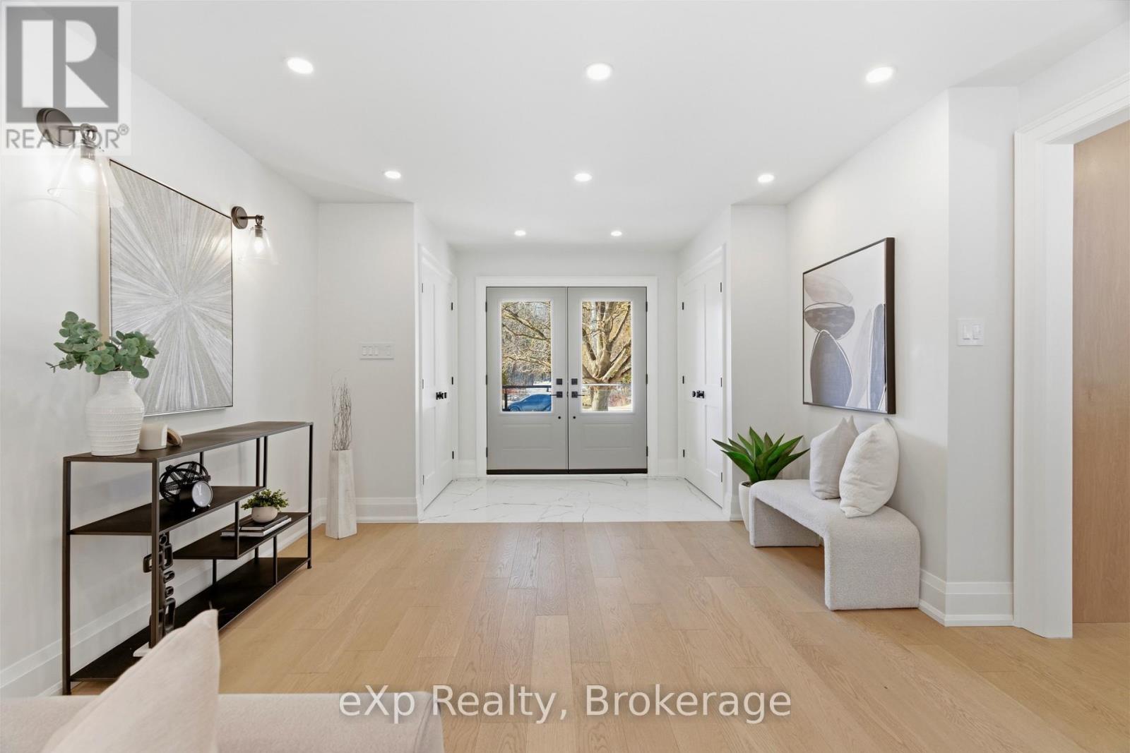 Welcome to this exceptional 5-bedroom estate offering over 6,000 sq. ft. of total refined living space, perfectly positioned on a breathtaking 3/4 acre property backing onto forest for ultimate privacy and serenity. Set well back from the road, this impressive residence delivers a true estate-like presence with a long approach and captivating natural surroundings. Inside, luxury and craftsmanship are showcased at every turn. The stunning chef's kitchen is a true showpiece, complete with quartz countertops, an oversized island, pot fillers, built-in refrigeration drawers, premium appliances, and custom cabinetry designed for both beauty and function. Ideal for entertaining, the expansive principal rooms flow seamlessly together, enhanced by elegant wall paneling, designer lighting, and an abundance of pot lights that create a warm yet sophisticated ambiance. The spacious bedrooms offer comfort and retreat, each featuring custom walk-in closets, while the primary suite elevates everyday living with spa-inspired finishes and elevated detailing. Every bathroom is appointed with heated floors, delivering everyday comfort and a true spa-like experience throughout the home. The exterior glass railings, and countless high-end upgrades throughout reflect thoughtful design and uncompromising quality. Adding to the home's charm and exclusivity, a picturesque creek with a tranquil pond runs across the front of the property, enhancing the natural beauty of the setting. Backing onto lush forest, this private oasis provides stunning views from every window. A seamless connection between indoor luxury and outdoor serenity. Cozy yet grand, elegant yet inviting, this is a rare opportunity to own a remarkable estate property where refined living meets breathtaking nature. Come and fall in love. (id:63285)