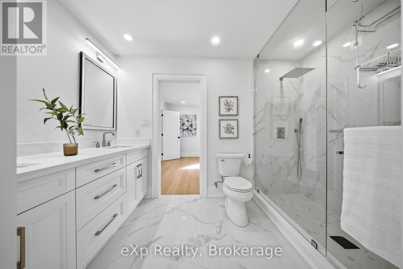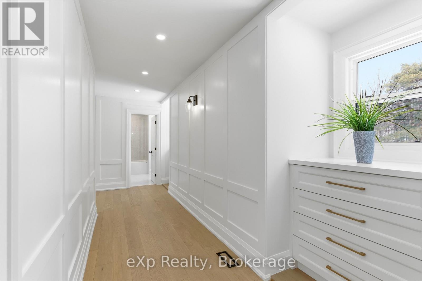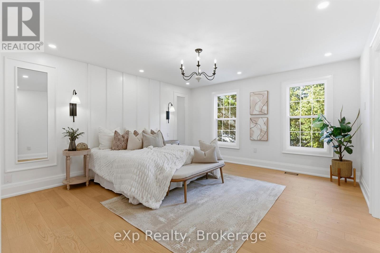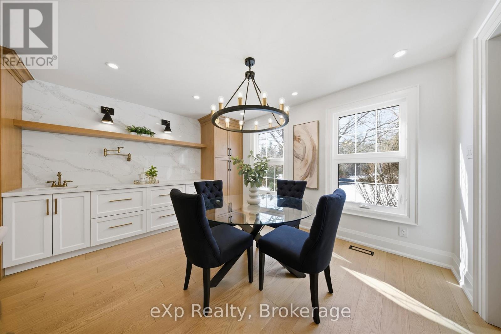 Welcome to this exceptional 5-bedroom estate offering over 6,000 sq. ft. of total refined living space, perfectly positioned on a breathtaking 3/4 acre property backing onto forest for ultimate privacy and serenity. Set well back from the road, this impressive residence delivers a true estate-like presence with a long approach and captivating natural surroundings. Inside, luxury and craftsmanship are showcased at every turn. The stunning chef's kitchen is a true showpiece, complete with quartz countertops, an oversized island, pot fillers, built-in refrigeration drawers, premium appliances, and custom cabinetry designed for both beauty and function. Ideal for entertaining, the expansive principal rooms flow seamlessly together, enhanced by elegant wall paneling, designer lighting, and an abundance of pot lights that create a warm yet sophisticated ambiance. The spacious bedrooms offer comfort and retreat, each featuring custom walk-in closets, while the primary suite elevates everyday living with spa-inspired finishes and elevated detailing. Every bathroom is appointed with heated floors, delivering everyday comfort and a true spa-like experience throughout the home. The exterior glass railings, and countless high-end upgrades throughout reflect thoughtful design and uncompromising quality. Adding to the home's charm and exclusivity, a picturesque creek with a tranquil pond runs across the front of the property, enhancing the natural beauty of the setting. Backing onto lush forest, this private oasis provides stunning views from every window. A seamless connection between indoor luxury and outdoor serenity. Cozy yet grand, elegant yet inviting, this is a rare opportunity to own a remarkable estate property where refined living meets breathtaking nature. Come and fall in love. (id:63285)