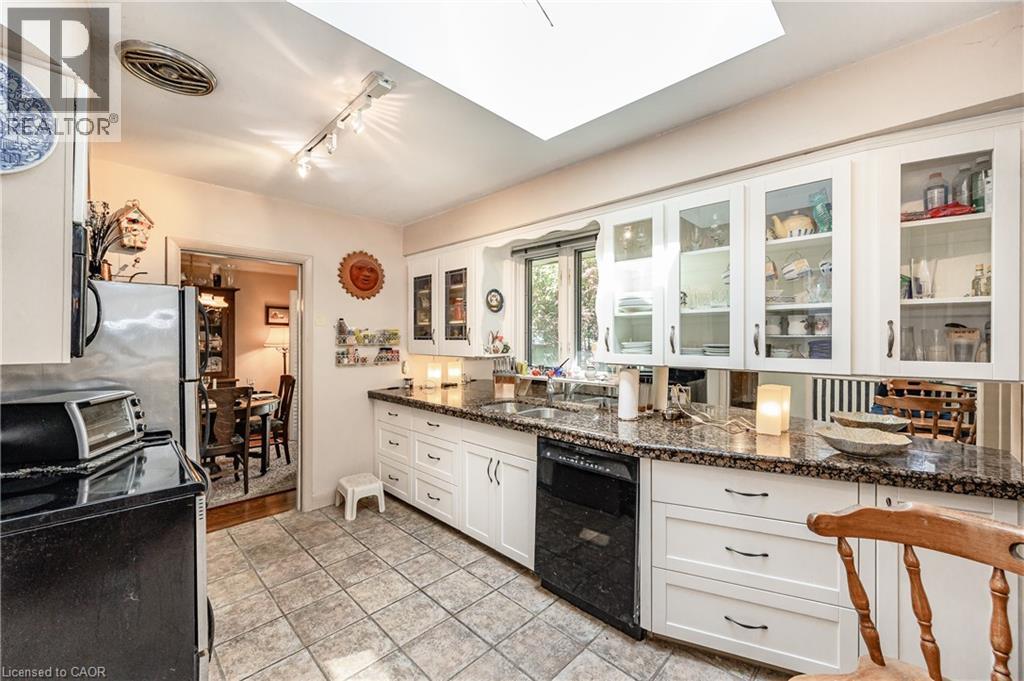 Located across the road from the lake this home has approximately 2400 sq ft of finished living space.The living room offers a cozy stone fireplace,ceiling coving and oak floors.There is easy access to the back deck through the dining room sliding doors were you can relax while over looking the fish and flower water pond with water fall, spacious stone patio and hot tub.Upgrades in the kitchen include a bright and cheery skylighy,new cupboards and pullout drawers and granite counter tops with mirrowed backsplash.Main bath upgrades include a whirpool soaker tub with marble surround,pedistal sink ,separate shower and marble flooring. The lower level offers a large guest suite, 4pc bath ,rec room,profesional workshop with built in work bench,music room(den),storage and large laundry room. (id:63285)