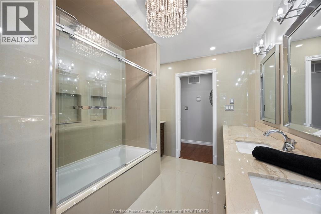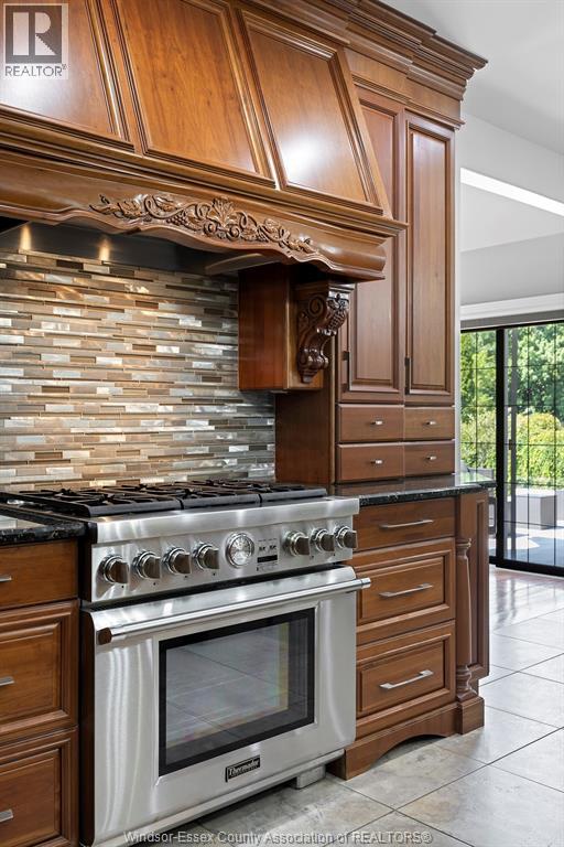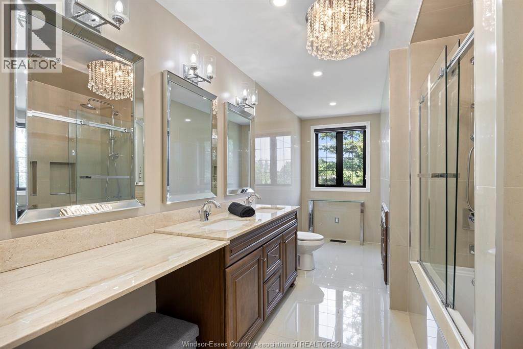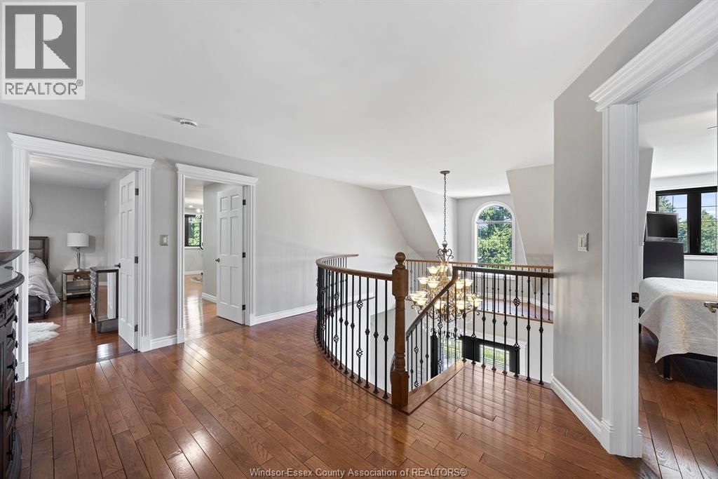 A beautifully maintained two-story home set on an extra-deep, park-like lot over 290 feet deep in a prime location near the water. This 4-bedroom, 5-bathroom home features a spacious and open-concept main floor with oak trim, custom cherry wood kitchen cabinetry, a large island, and high-end stainless steel appliances including a 36"" Thermador dual-fuel stove and Electrolux fridge/freezer combo. The main floor includes a bedroom with a full ensuite, while the upper level offers a large primary suite with walk-in closet and ensuite, plus another bedroom with its own walk-in closet. Enjoy both a natural wood-burning fireplace and a gas fireplace, along with hardwood and ceramic floors throughout. Granite staircase leading to the basement. The home is equipped with smart automation for garage doors, lighting, pool pump, and security system, as well as a tankless water heater, ERV, high-efficiency furnace and AC, central vacuum, and video surveillance around the perimeter. The professionally landscaped backyard is a true paradise, featuring a saltwater sports pool with a new liner (2024), updated salt system, heater (2023), safety cover, and a raised patio with glass railings overlooking the yard. Additional features include a large double garage with hot/cold water tap and counter, rear access to the basement and garage, gas BBQ hookup, three storage sheds, stair access to storage above the garage and below the sunken sunroom, and an irrigation system for the front yard. Premium lot in a highly desirable area. (id:63285)