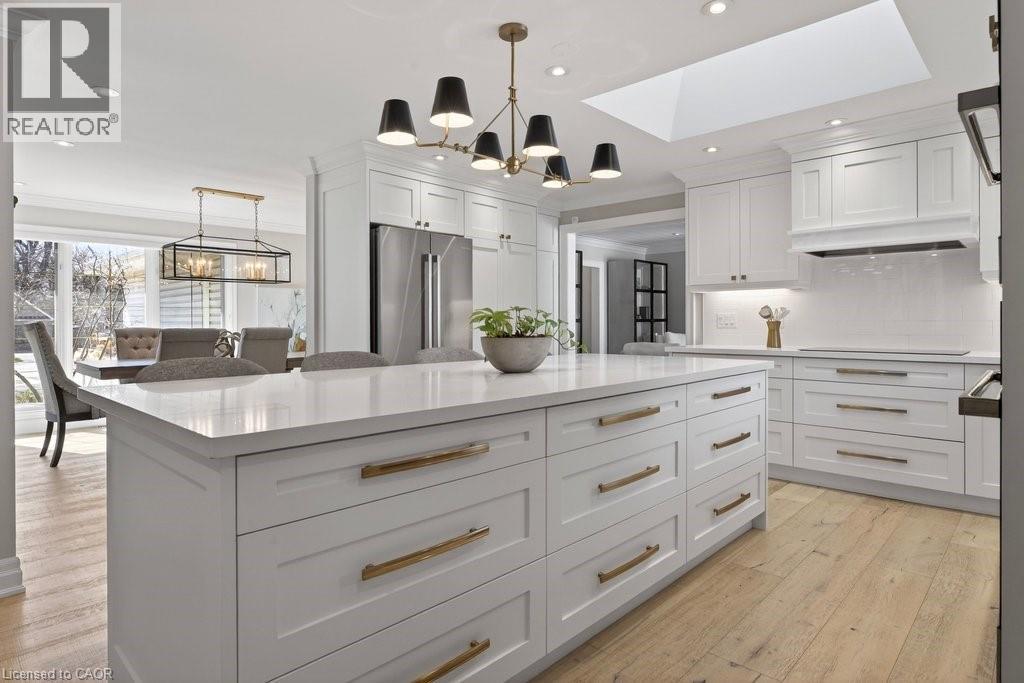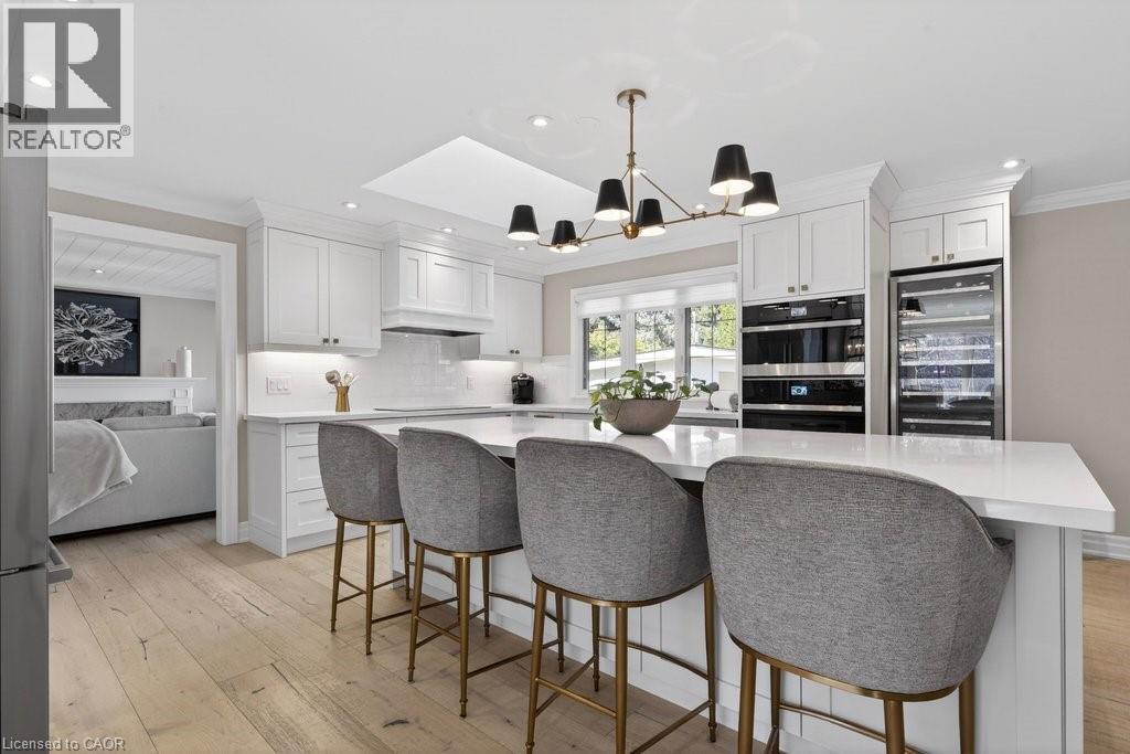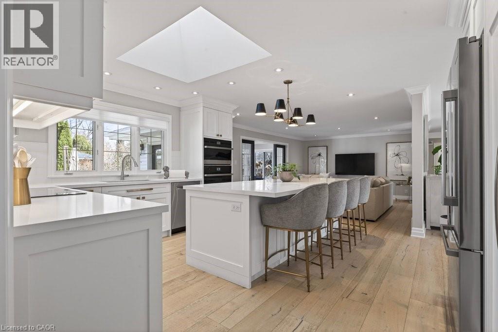 Stunning and absolutely beautiful ranch bungalow in sought-after Aldershot location! Steps to downtown, Burlington Golf & Country Club and LaSalle Park/Marina. 2,126 sq.ft. of open concept main level living space that features a custom kitchen with oversized island, quartz countertops, stainless steel appliances and wine fridge. Primary bedroom with custom built-ins, a 3-piece ensuite with heated floor, access to a walk-in closet/dressing room and a walkout to the 4-season sunroom. The main level also features a spacious family room, a second bedroom, a separate dining room and a living room with a gas fireplace and walkout to an incredible backyard oasis! The professionally designed and landscaped yard completed in 2025 features a heated fiberglass saltwater pool, cabana, gas fire pit, landscape lighting and a large stone patio with gas BBQ hookup. Additional features and finishes include engineered hardwood floors, crown moulding, pot lighting, multiple skylights and a professionally finished lower level with laundry, large crawl space for storage and an additional bedroom with access to a recent 4-piece bathroom (2024). Double garage with inside entry and epoxy floor and a recently updated circular driveway and front walkway (2025). 2+1 bedrooms and 3.5 bathrooms. (id:63285)
