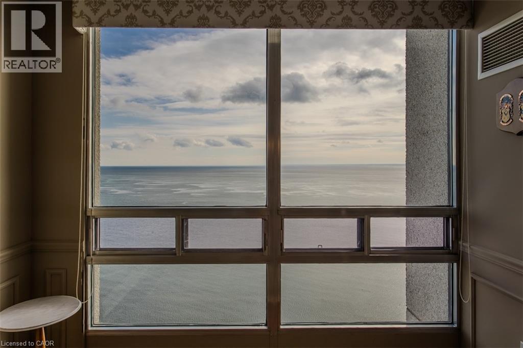 Wake up to breathtaking, unobstructed views of Lake Ontario from this sun-drenched corner residence, ideally positioned in one of Bronte's most sought-after waterfront communities. Perfectly tailored for discerning downsizers, this home offers the rare opportunity to simplify without sacrificing space, comfort, or lifestyle-delivering a true resort-inspired experience steps from the harbour, marina, charming shops, restaurants and picturesque walking trails. A gracious entryway with tray ceiling sets the tone, leading into an elegant interior finished with wainscoting, high ceilings and hardwood flooring throughout. The spacious kitchen is both functional and refined, featuring granite countertops, tile backsplash, valence lighting and stainless steel appliances, flowing seamlessly into the open-concept eating area and main living space. Walls of floor-to-ceiling windows frame breathtaking, unobstructed views of Lake Ontario, filling the home with natural light throughout the day. Step onto the private balcony-large enough for lounging and dining-and take in panoramic lake and marina vistas that feel like a permanent getaway. A second living area, also wrapped in floor-to-ceiling windows, and a formal dining room provide flexibility for entertaining or quiet relaxation. The primary suite is a serene retreat with stunning lake views and a spa-inspired five-piece ensuite featuring dual vanities, a glass walk-in shower and a deep soaker tub. A generous second bedroom, a stylish three-piece bath with walk-in shower, and a dedicated in-suite laundry room complete the layout. Residents enjoy an exceptional array of resort-like amenities including an indoor pool, hot tub, sauna, fitness centre, tennis and squash courts, golf practice area, games and media rooms, library, art and woodworking studios, organized social activities, a lakefront clubhouse, car wash and 24-hour security. An unparalleled opportunity to embrace refined, low-maintenance waterfront living. (id:63285)