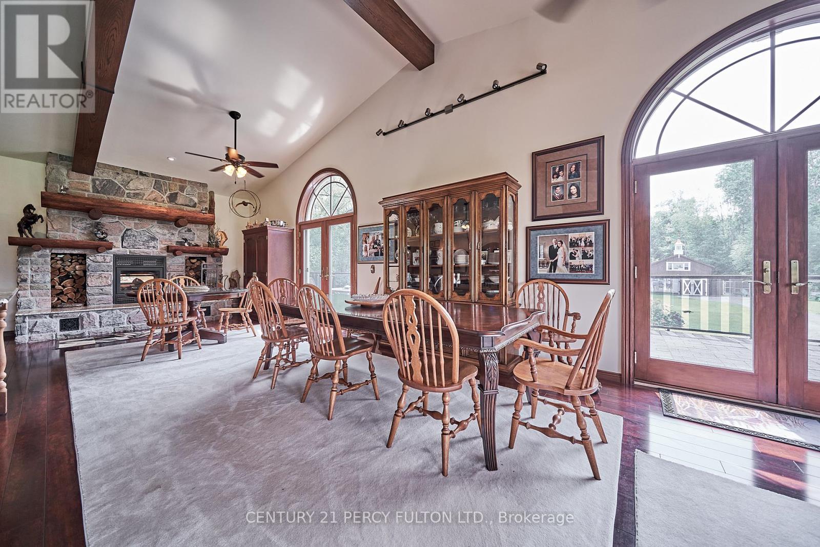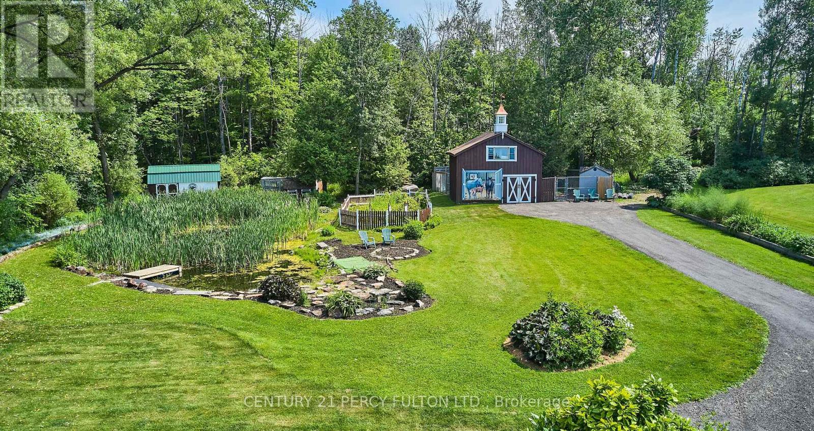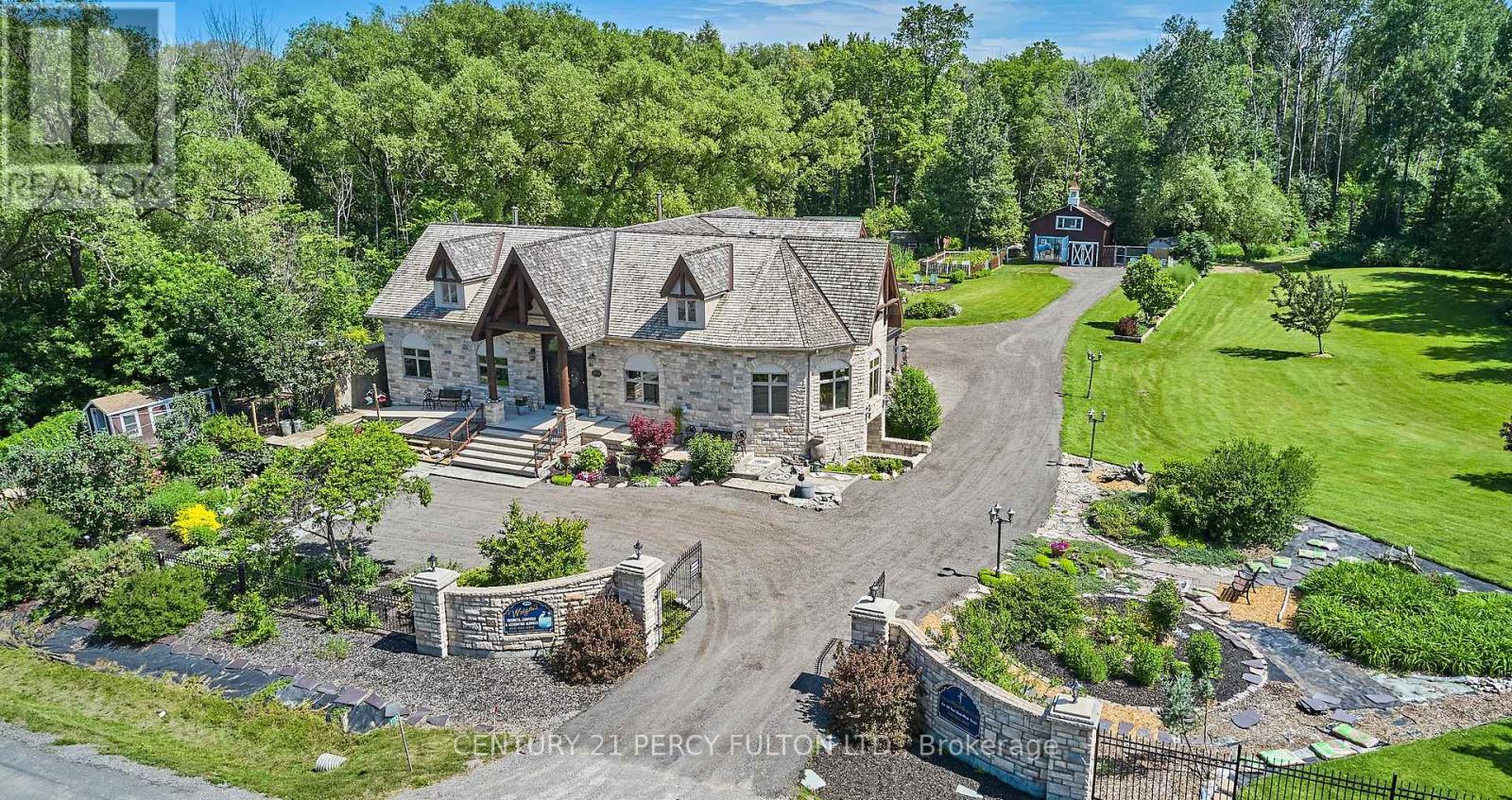 Experience rural charm in this 5000 sqft bungalow, just 40 minutes east of Toronto via 401 and 407. The open-concept design with three wood-burning fireplaces creates a warm ambiance. The estate offers versatile living space suitable for accommodating multiple generations under one roof. Enjoy flower and vegetable gardens, a stream on the east side of the property and two ponds fed by the artesian well. Outdoor spaces invite you to savour the gorgeous environment, ideal for creating lasting memories with your loved ones. Ample parking for many vehicles, a two-storey barn with a custom built-in garage and five out buildings cater to storage and hobby farm needs. New propane furnace, air conditioner, septic system and upgraded 200 amp electrical service ensure modern comfort and functionality for all family members. Large laundry and tool rooms enhance daily functionality, making household tasks easier to manage. The four spacious bedrooms provide the convenience for a multi-generational household. (id:63285)